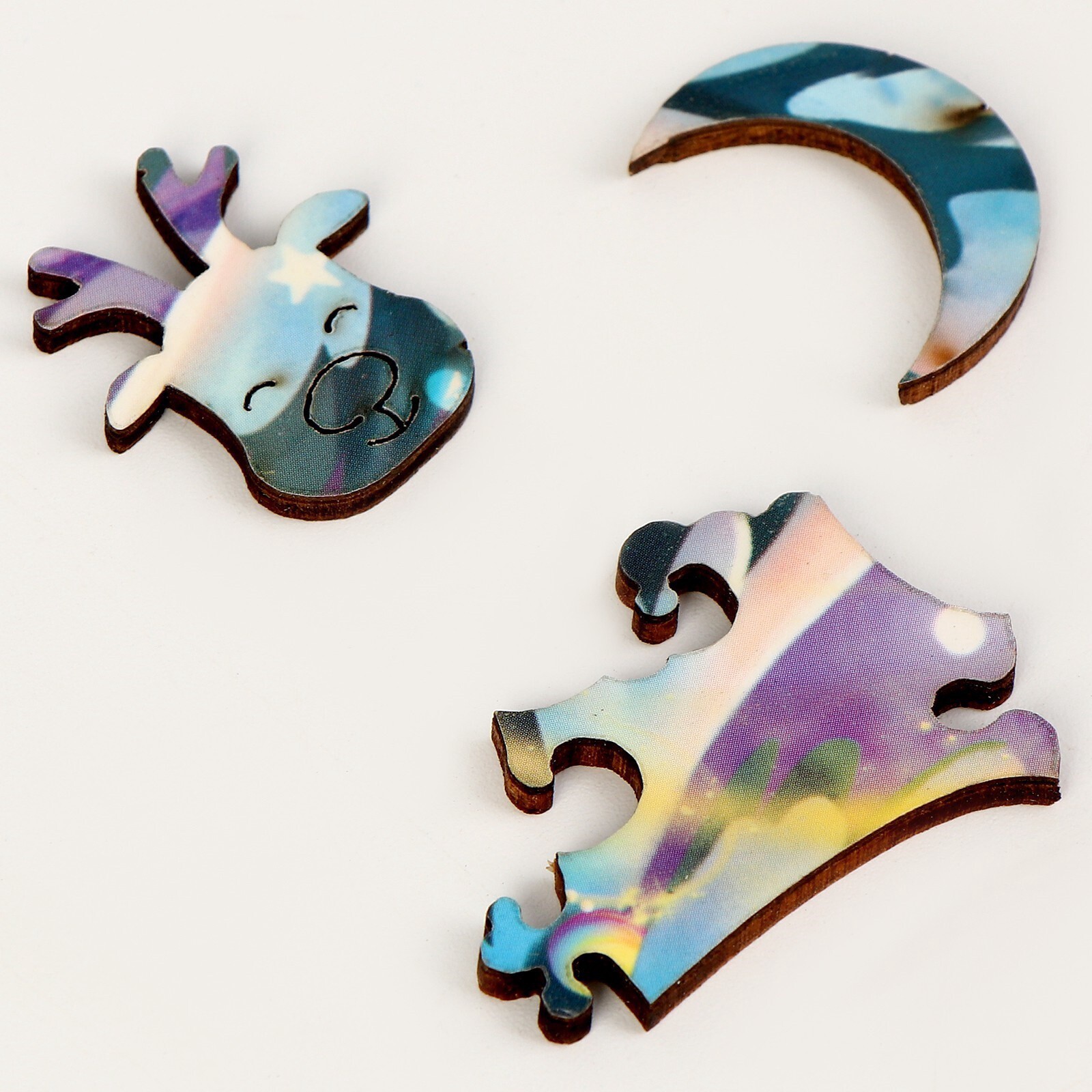 Соберите красочный пазл с новогодним изображением! Данный пазл изготовлен из дерева и обладает высоким качеством элементов, которых в коробке вы найдете в количестве ста сорока восьми деталей. Некоторые из них еще и обладают светящимся эффектом, что добавит волшебства данной иллюстрации!