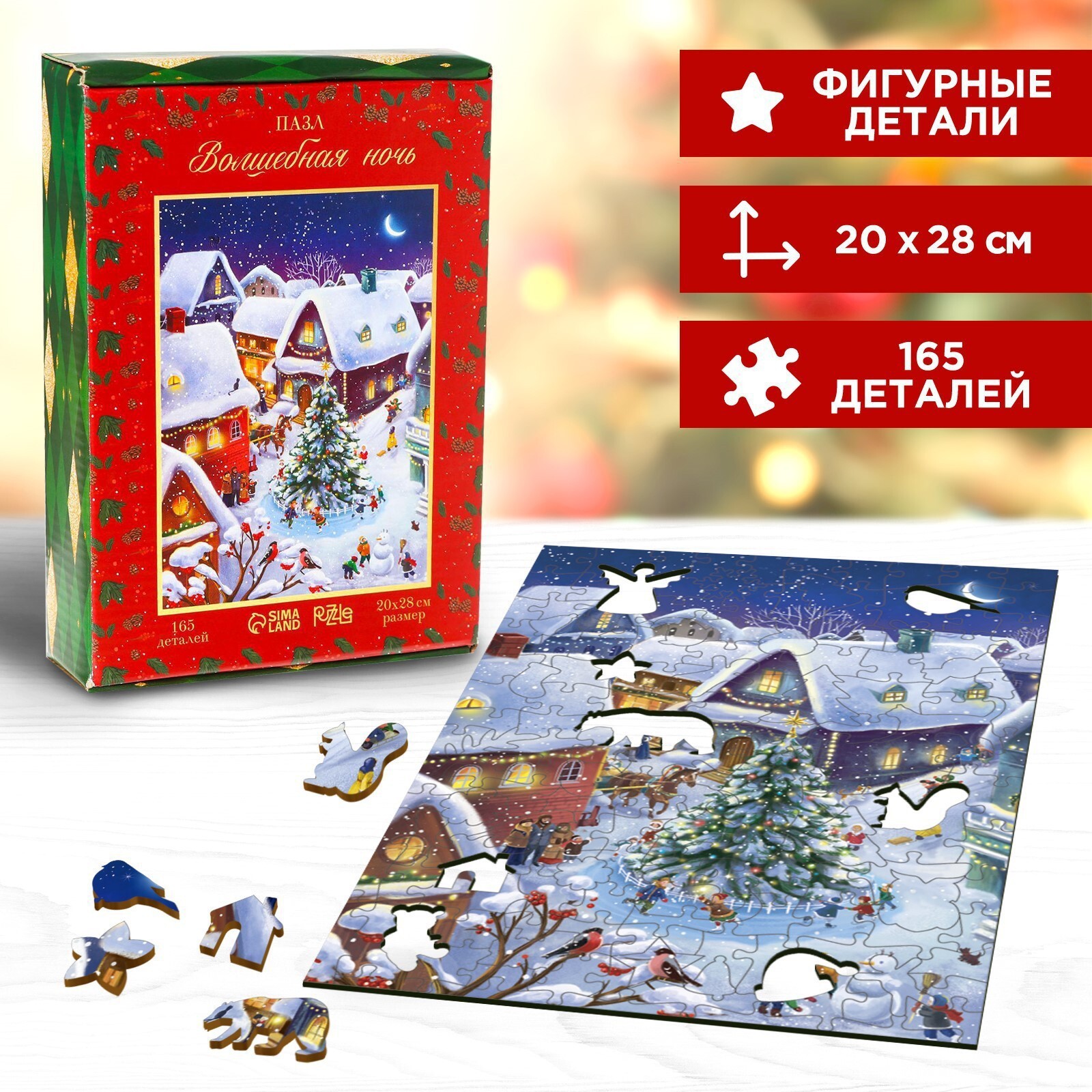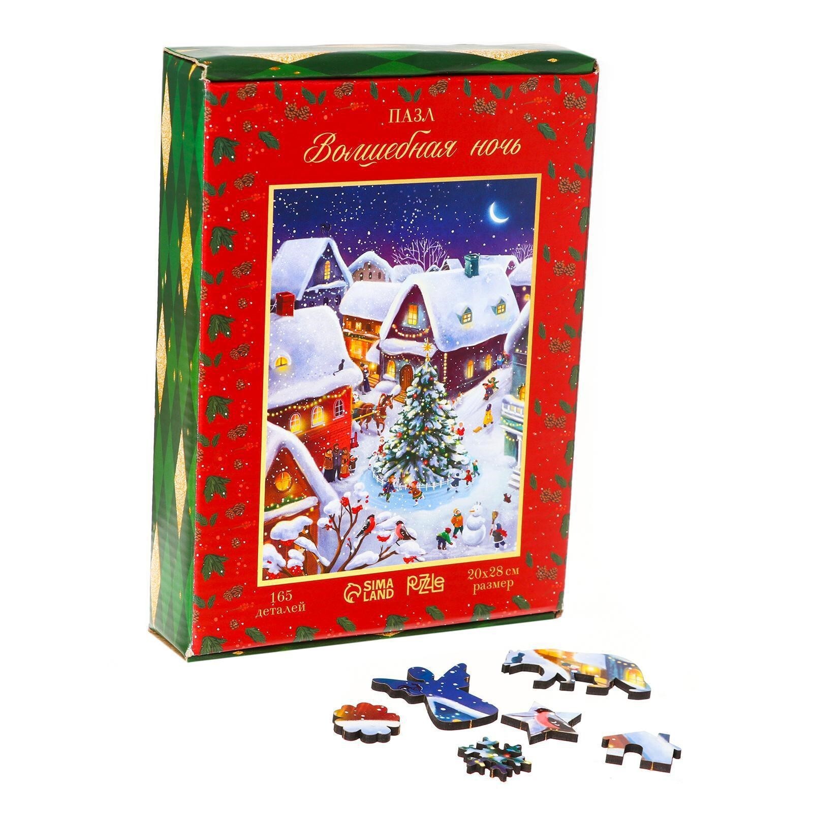 Данный пазл изготовлен из прочного дерева и предложит вам создать красочную иллюстрацию в новогодней тематике! В коробке вы найдете сто шестьдесят пять элементов, а в собранном виде размер пазла составит 200x280мм.