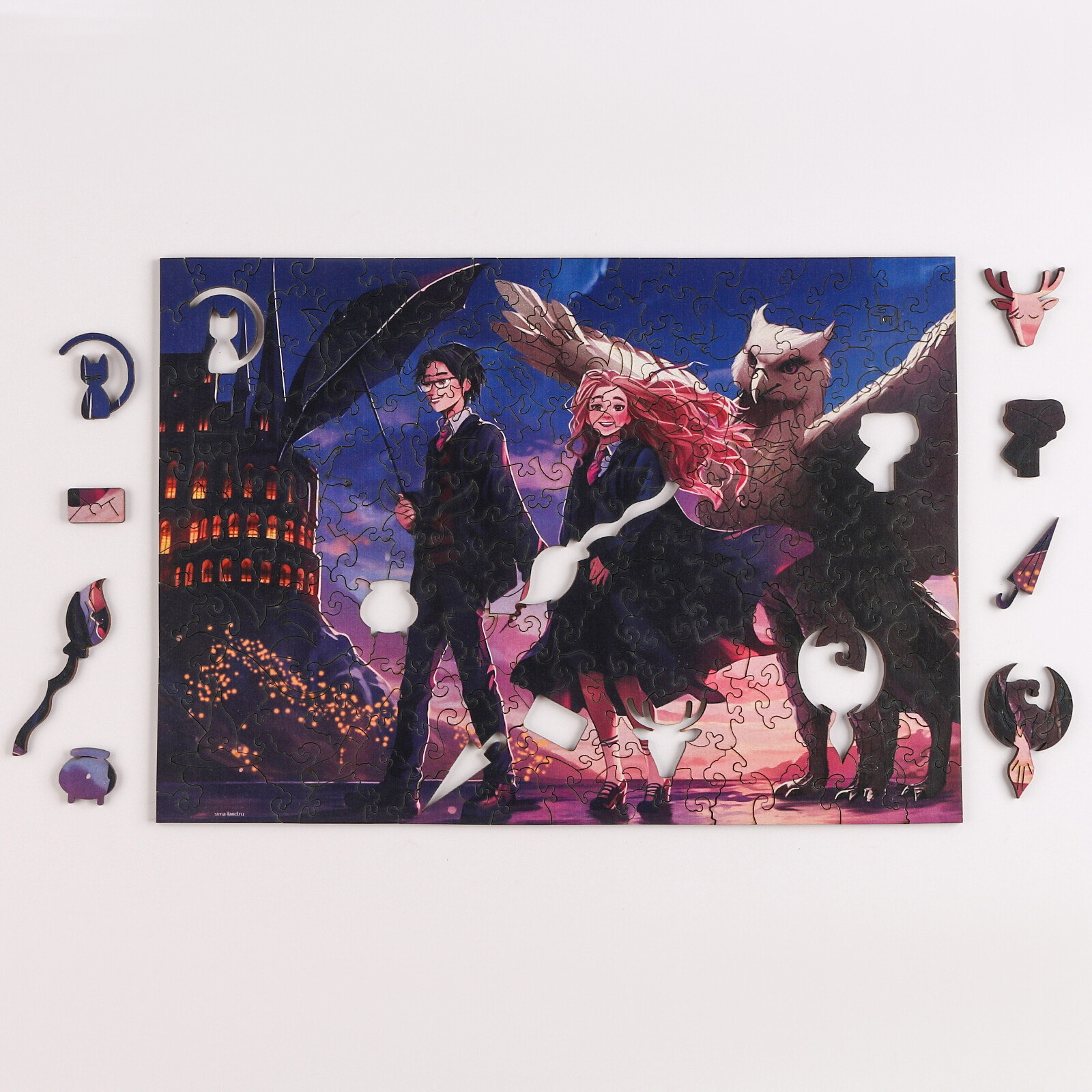 Детали данного пазла изготовлены из прочного дерева и имеют качественный принт. Собрав все детали разной формы воедино, вы получите красочное изображение с героями цикла произведений о юном волшебнике!