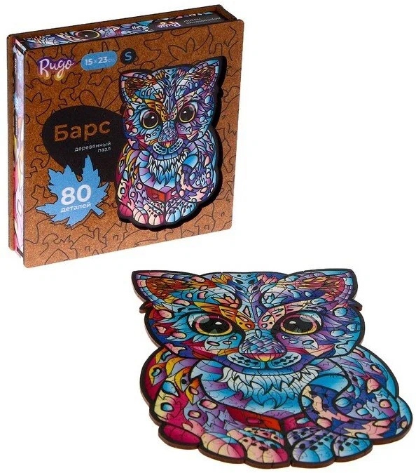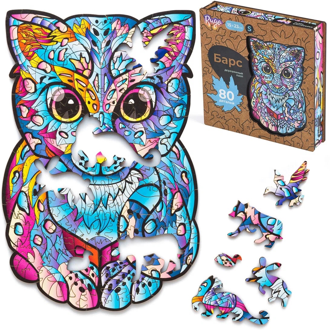 Соберите яркую иллюстрацию! Детали данного пазла изготовлены из прочного дерева и имеют качественный принт. Разноугольные элементы разной формы складываются в необычное и красочное изображение барса.
