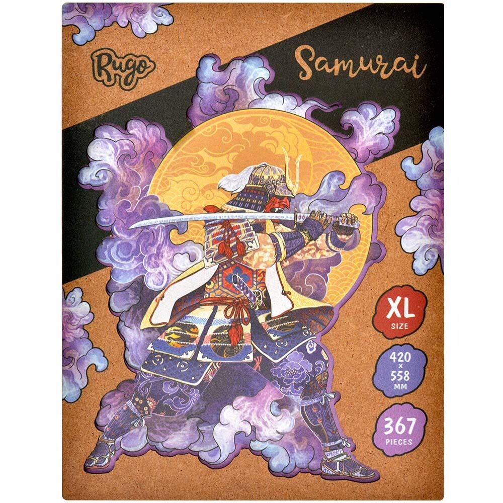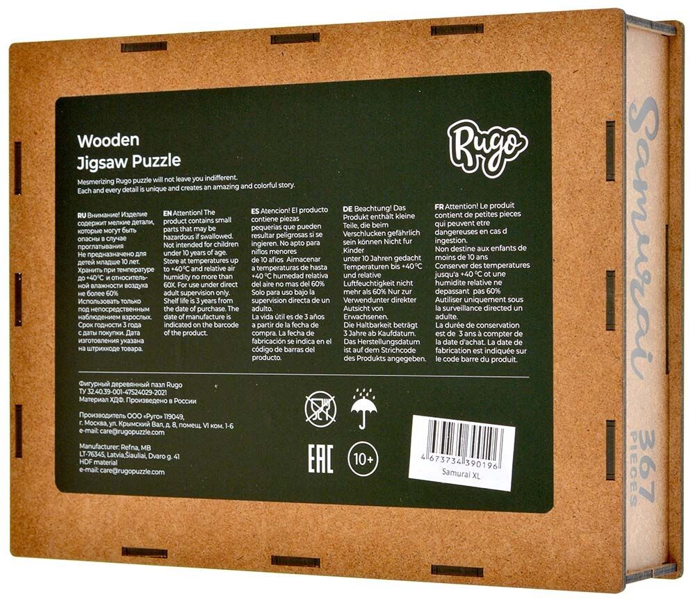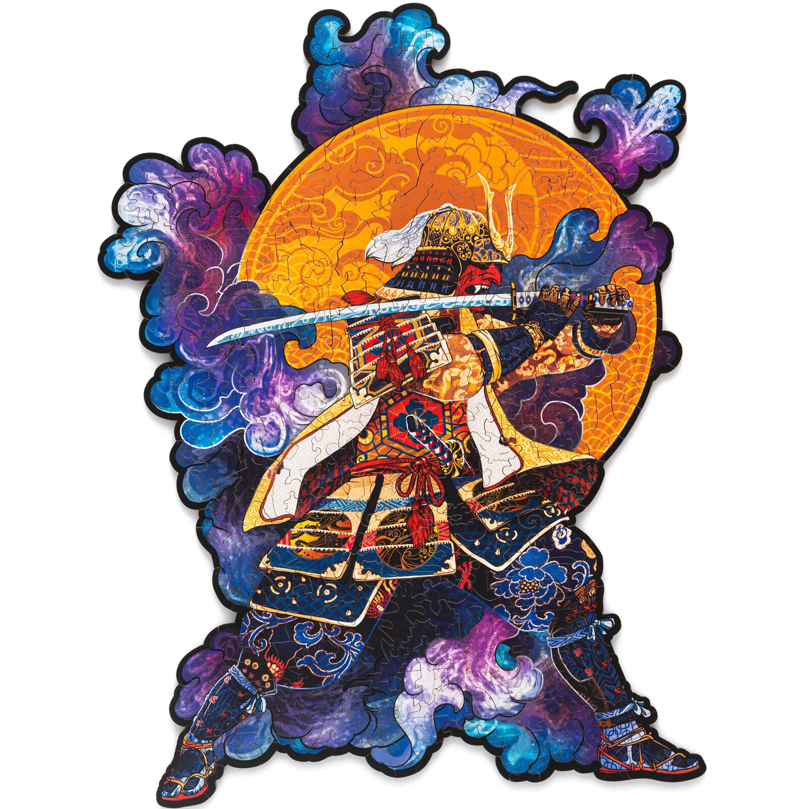 Данный пазл содержит множество деталей, и собрать его будет непростой задачей. Множество деревянных элементов по итогу соединятся в красочную и большую иллюстрацию с самураем, готовым к бою. В собранном виде размер пазла составит 420x558мм.
