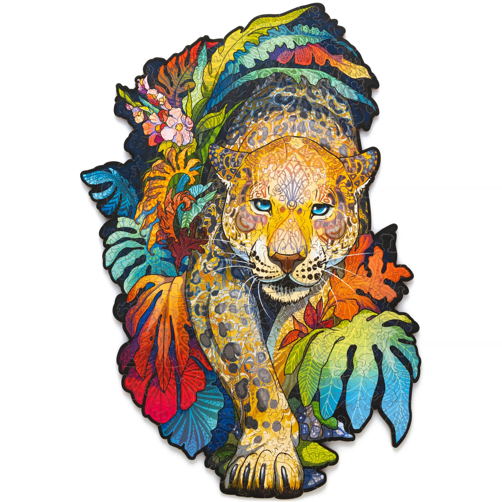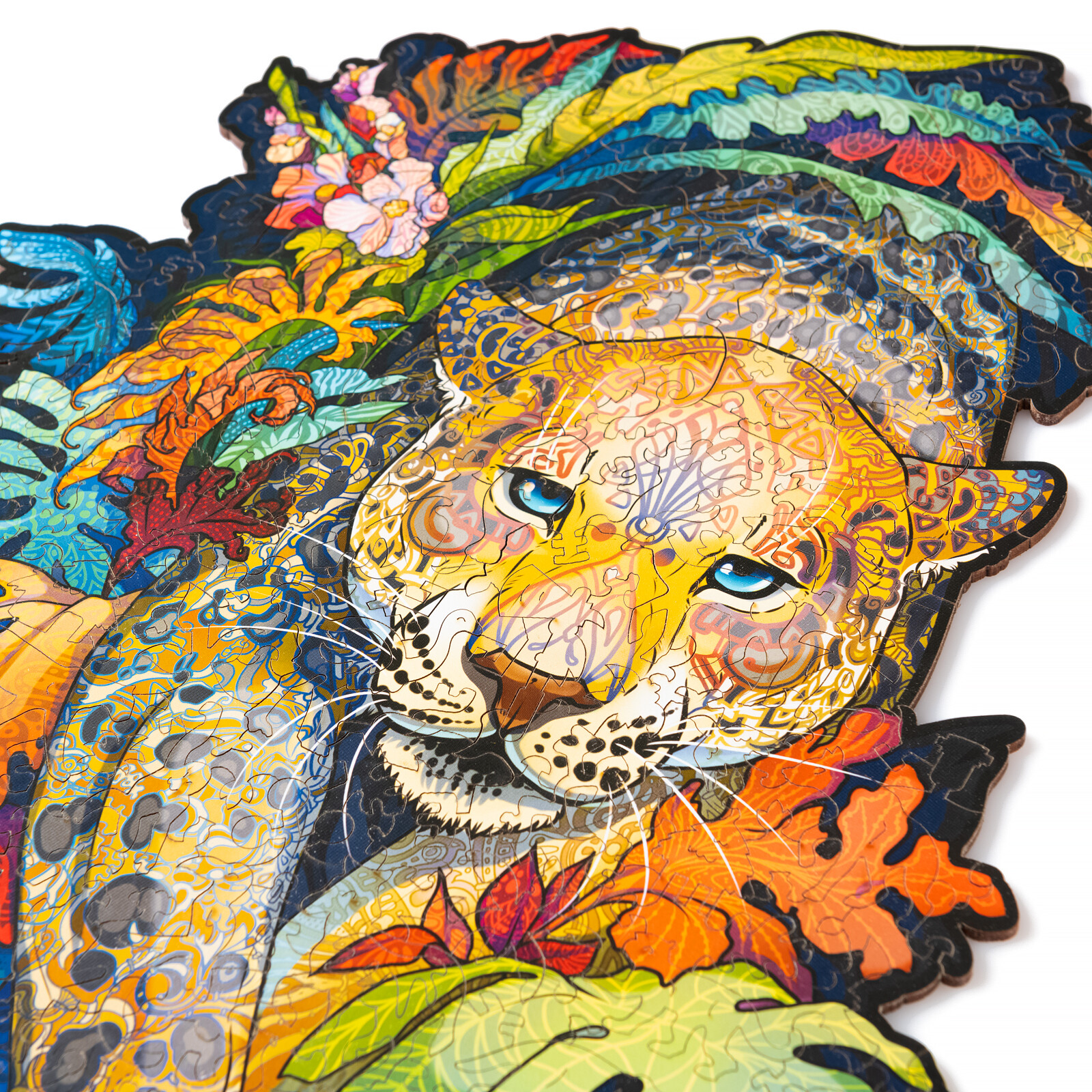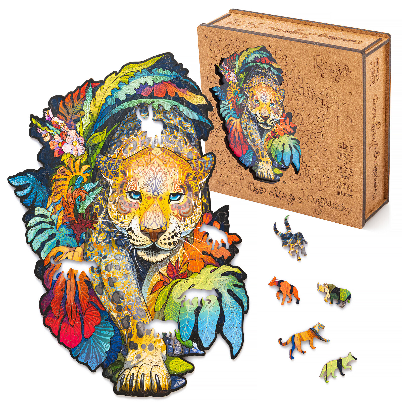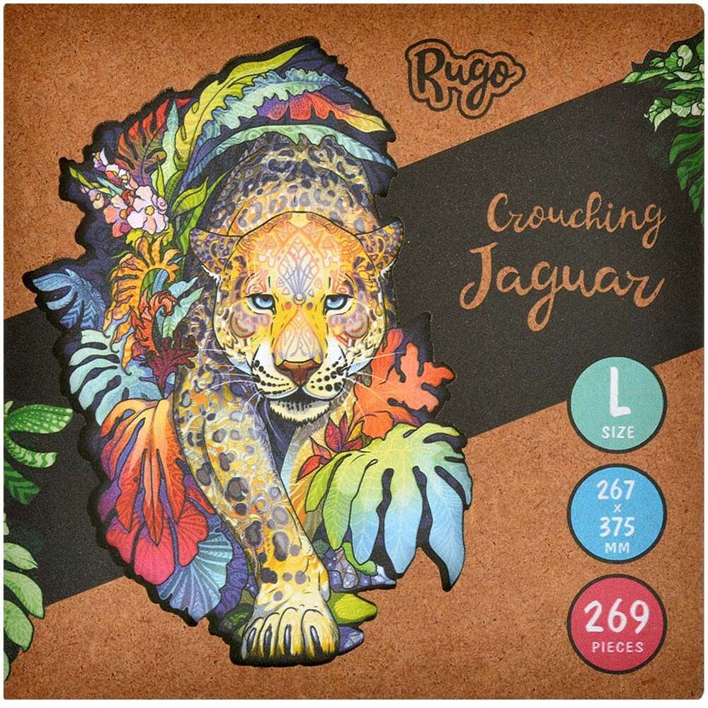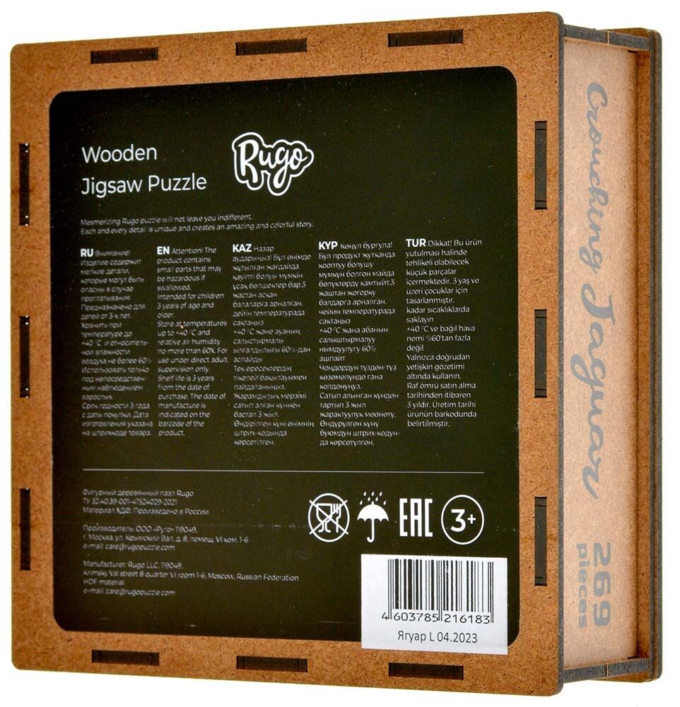 Пазлы данного производителя изготавливаются из дерева и обладают высоким качеством. Множество деталей, имеющих разную форму и размер, по итогу складываются в яркую и красочную иллюстрацию гепарда в джунглях. В собранном виде размер пазла составит 267x375мм.