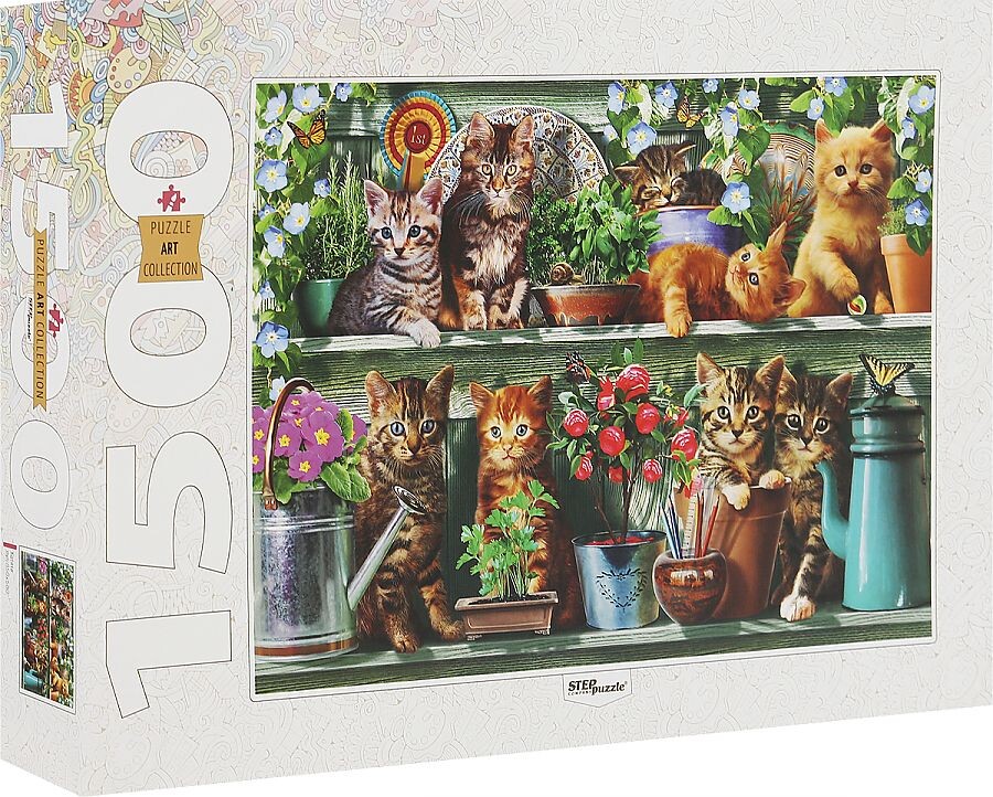 Перед вами картонный пазл с милой иллюстрацией кошек. 1500 деталей станут хорошей зарядкой для ума и долгого времяпрепровождения.