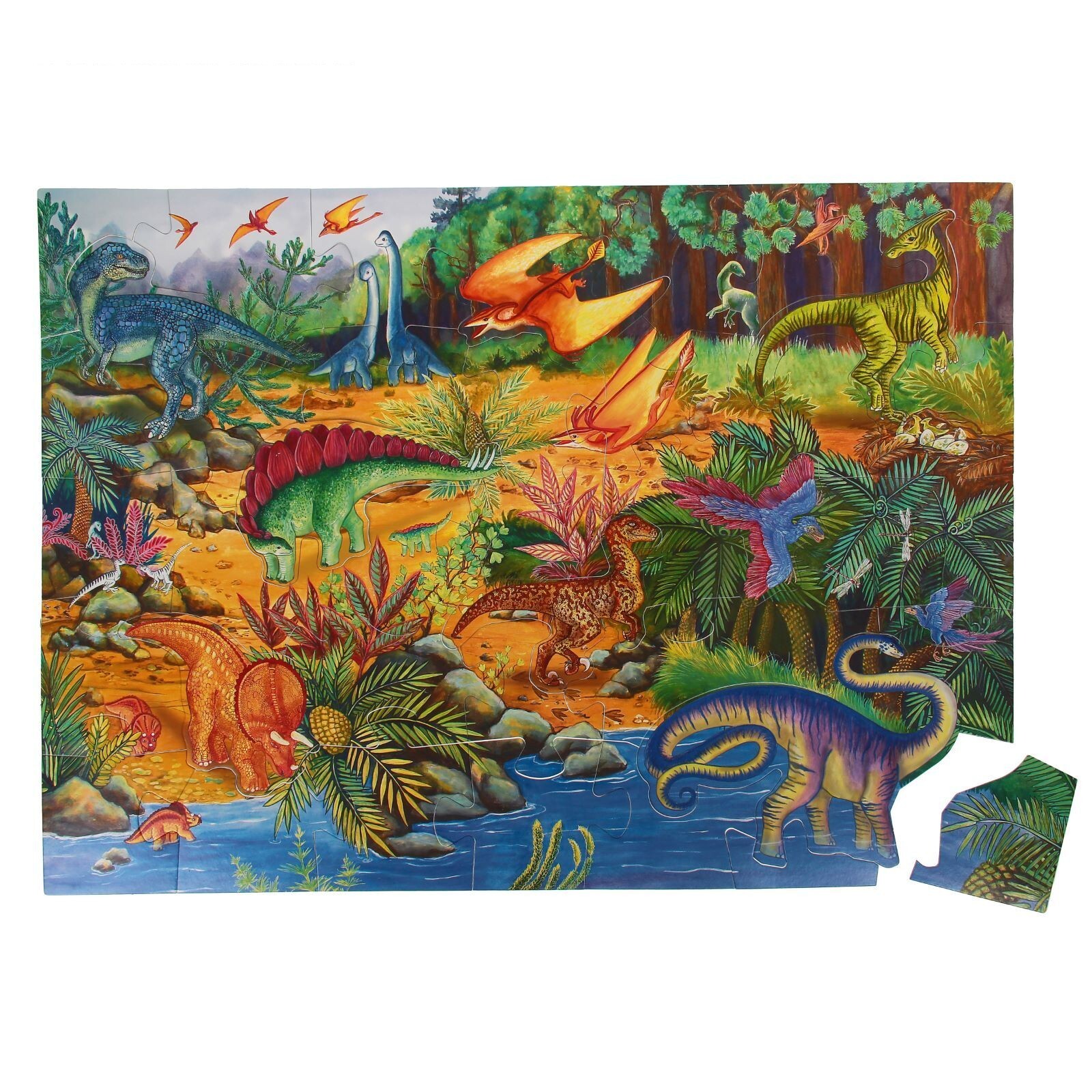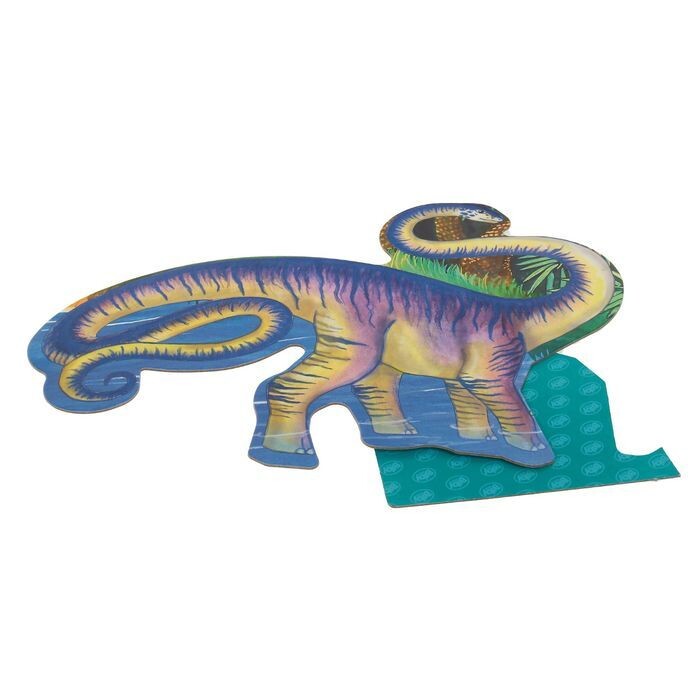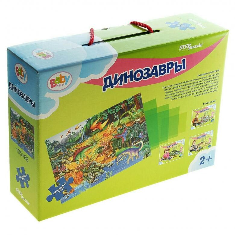 С данным пазлом самые маленькие игроки смогут развивать навыки моторики и внимательности. В коробке вы найдете тридцать четыре больших детали из картона и специальные картины-подсказки. С помощью деталей дети от двух лет смогут собрать большую и красочную картину с милыми динозавриками.