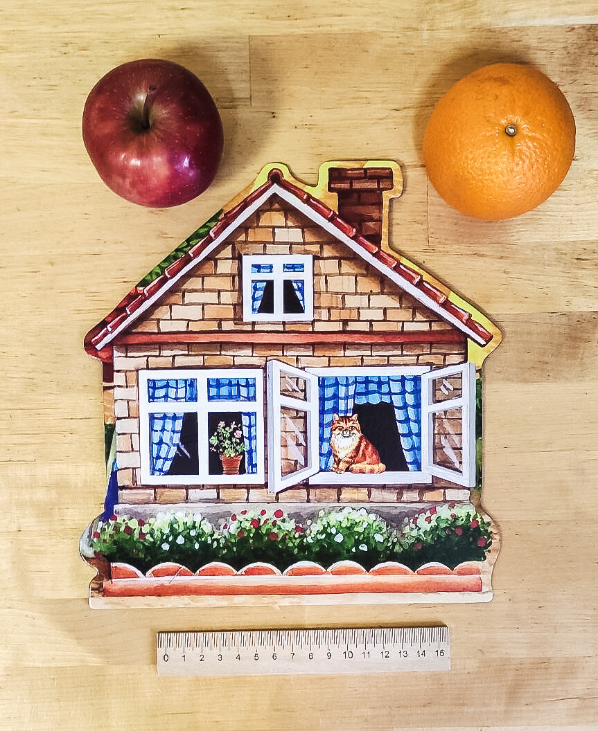 Изготовленный из прочного картона, данный пазл имеет очень большой размер деталей, чем подойдет для самых маленьких детей. Тридцать четыре элемента складываются в красочное изображение фермы.
