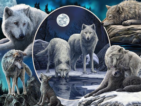 В коробке вы найдете пятьсот деталей из плотно картона с эффектом объемного изображения. С помощью них вы сможете собрать удивительную иллюстрацию волков, полную атмосферы фэнтези.
