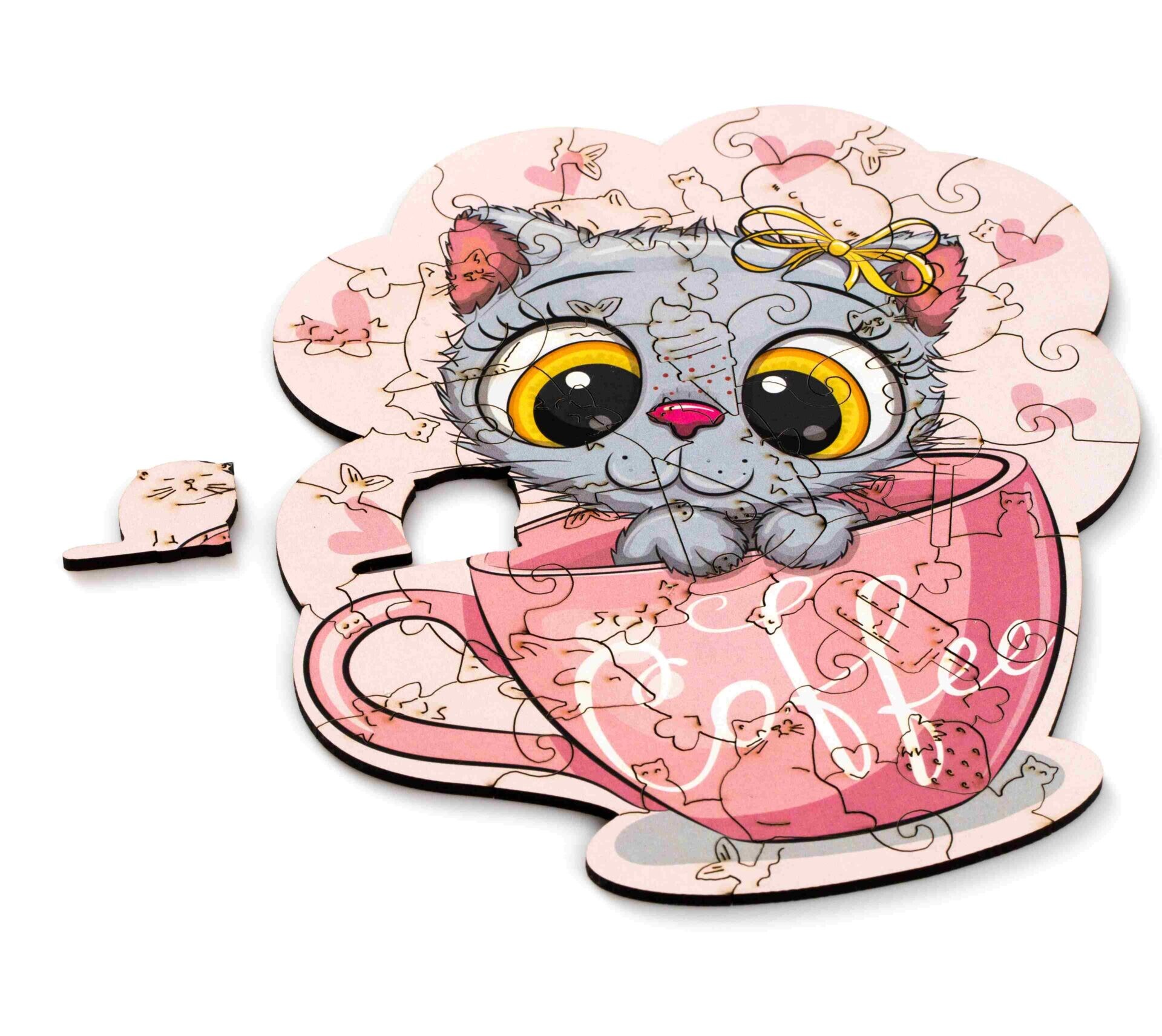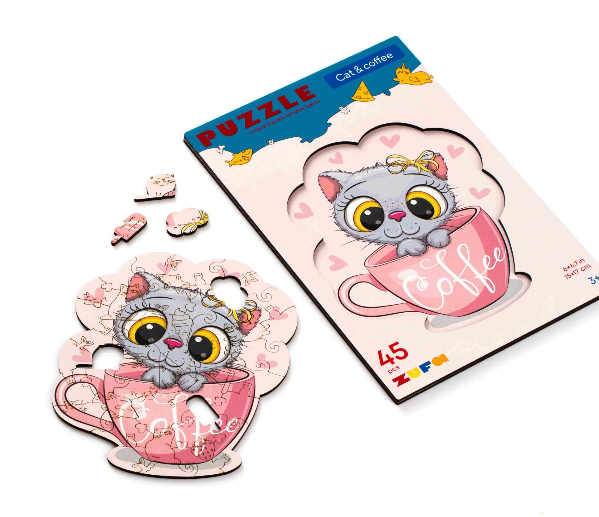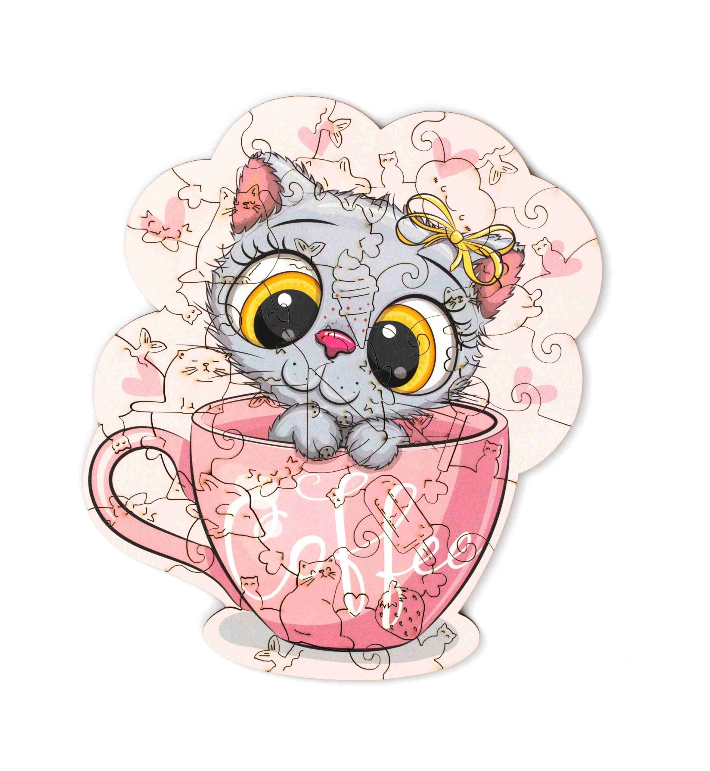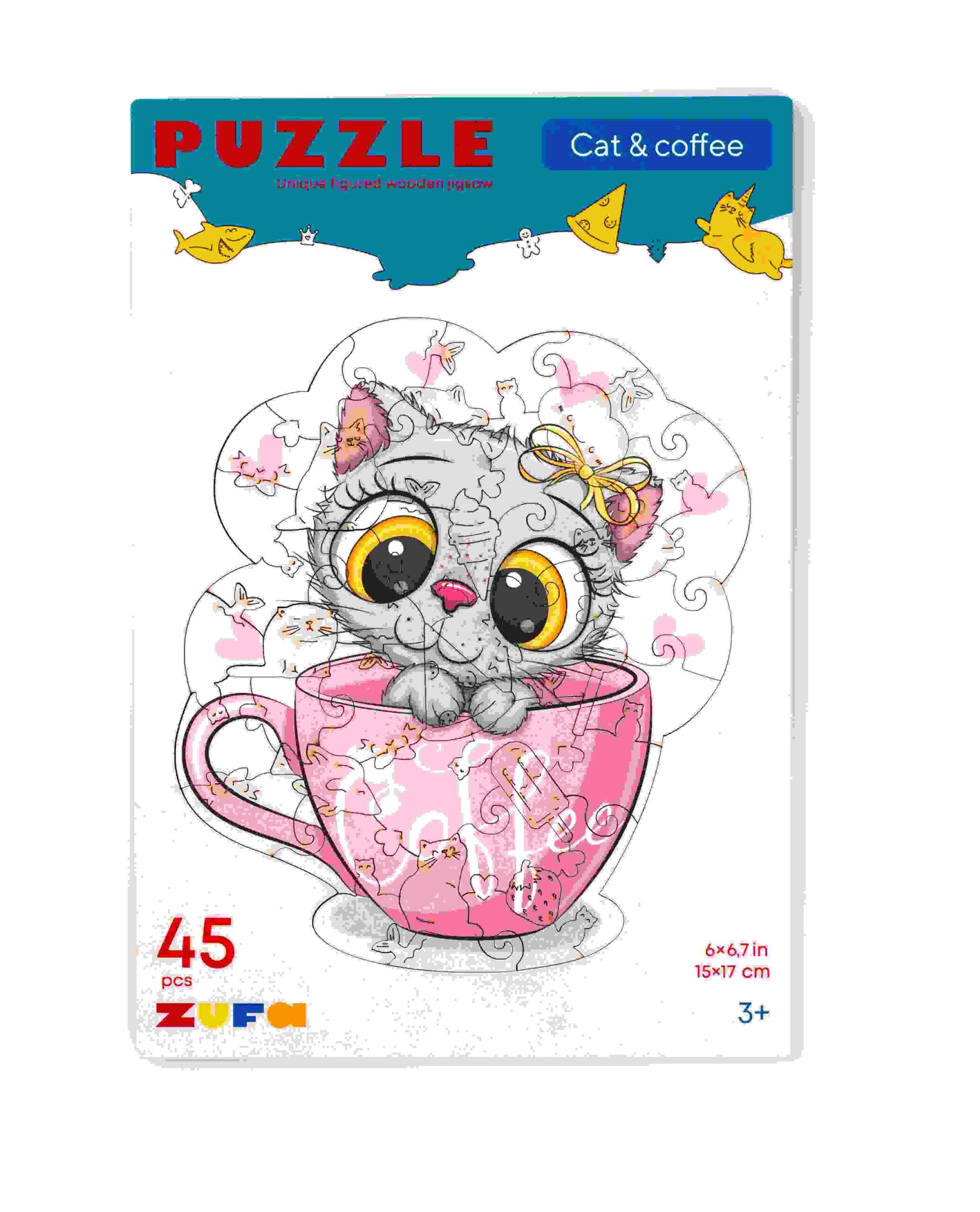 Пазл Zufa деревянный "Кот и кофе" размер S kids (45 деталей)