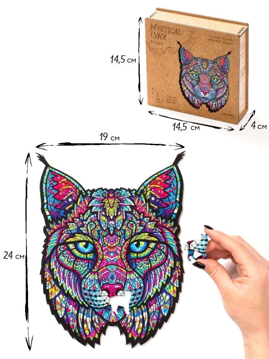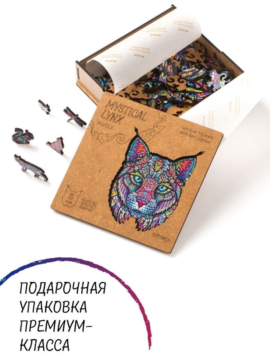 Пазл Zufa деревянный "Мистическая Рысь" размер S (103 детали)
