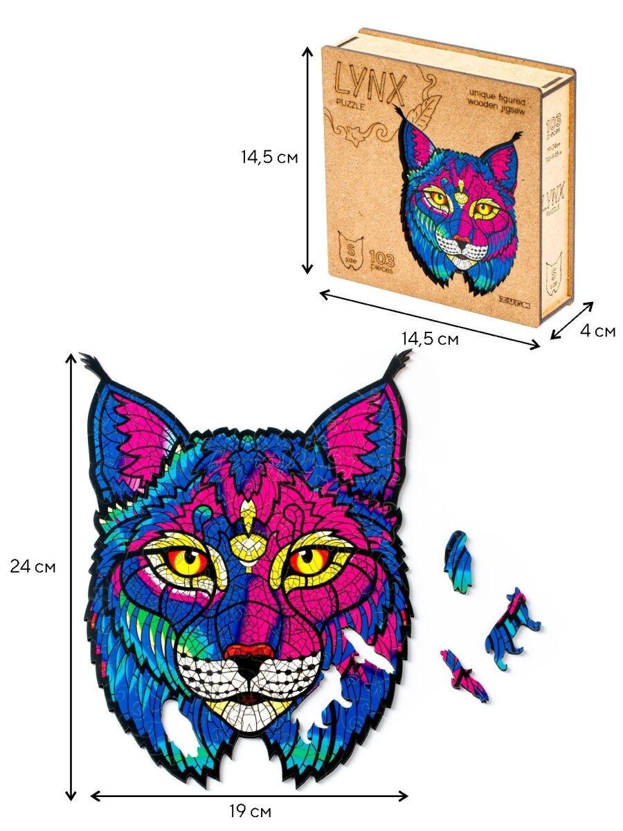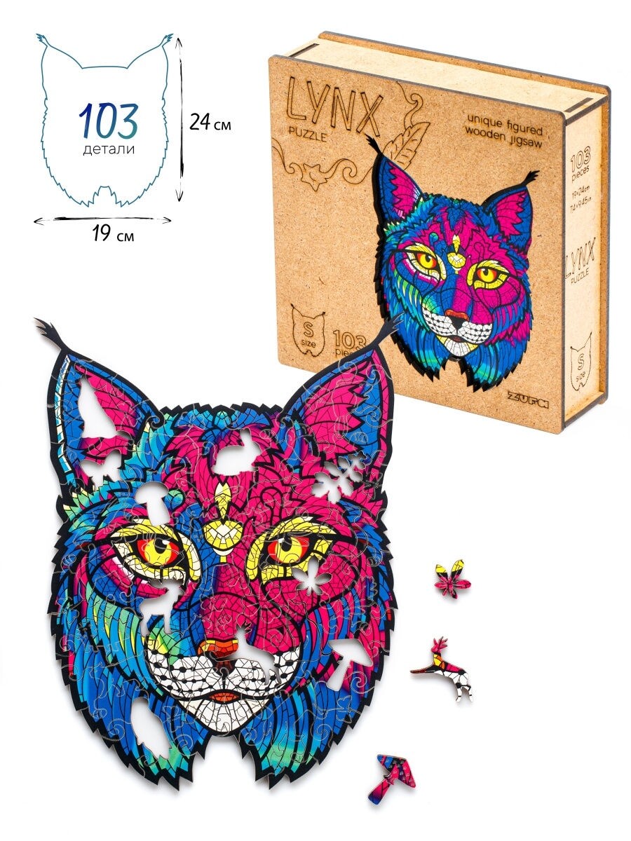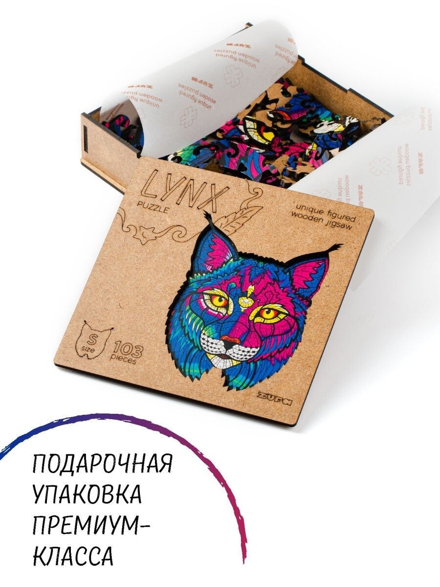 Пазл Zufa деревянный "Рысь" размер S (103 детали)