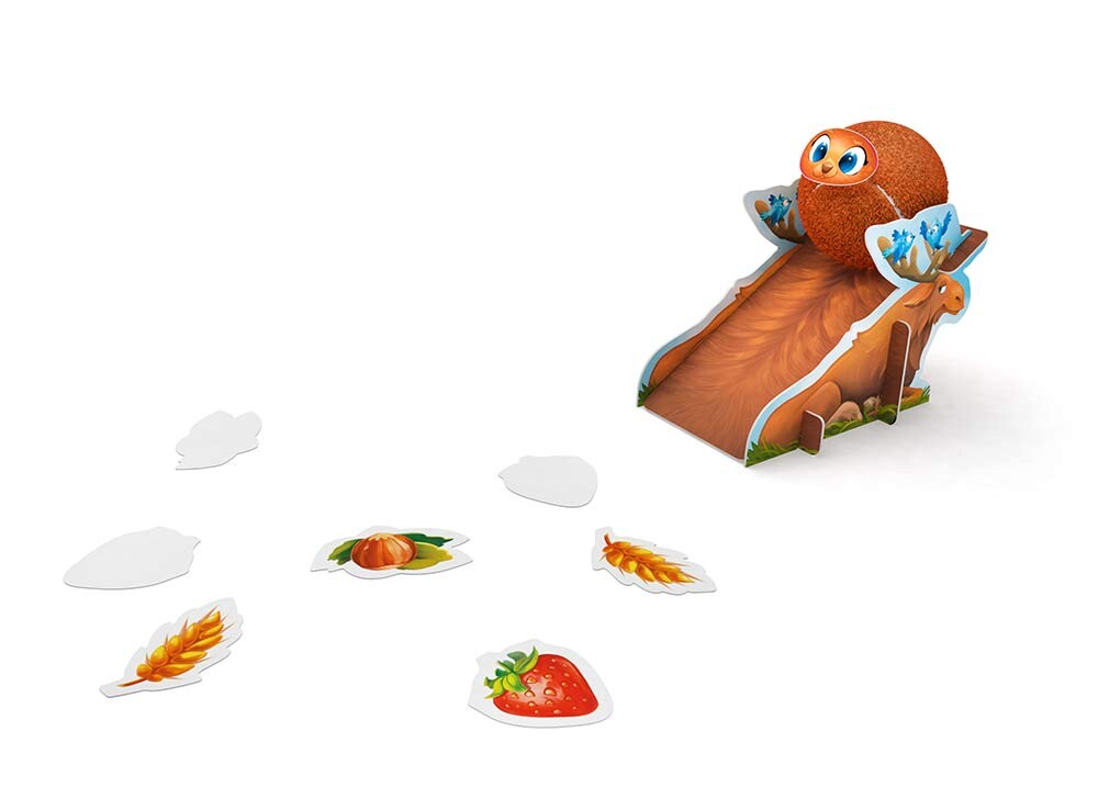 18 жетонов-липучек с лакомствами (6 лесных орехов, 6 земляничек и 6 колосков),