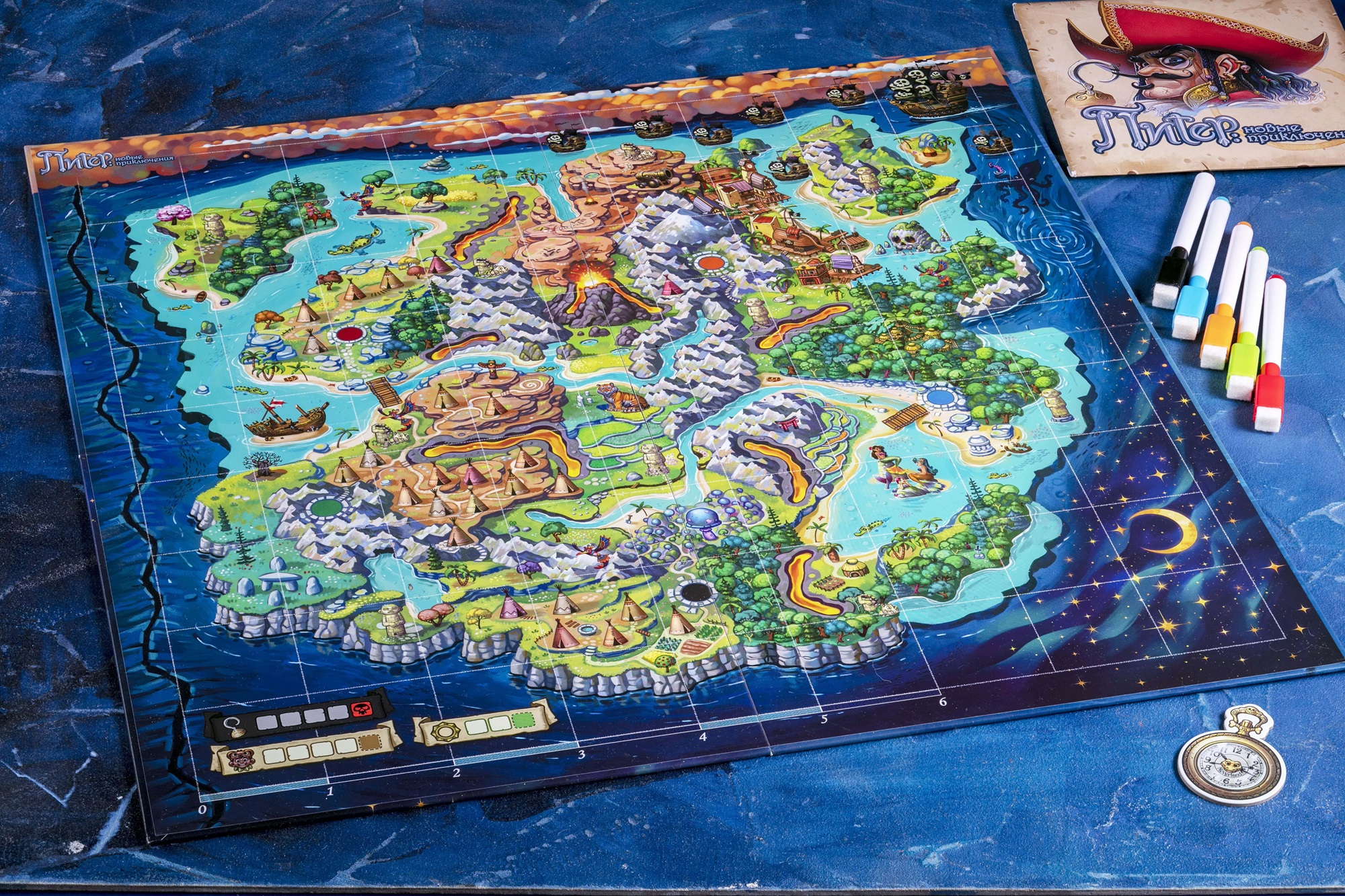 Новые приключения ждут! В роли известных героев спасите заблудших детей с острова! Определитесь, какого персонажа вы возьмете себе - каждый отличается своими способностями, а потом отправляйтесь на исследование игрового поля. На нем спрятаны дети, а также опасные пираты. С помощью специальных карт подсказок вам нужно понять, где найти ребенка, и не наткнуться на пирата в процессе. Если вам удастся найти пять детей, игроков ждет победа. Но если вы встретитесь хотя бы с двумя пиратами, вам достанется только поражение. При этом, в зависимости от итога партии, следующие игры будут другими, и исследование острова может стать легче, либо в игру введутся новые правила. Попробуйте спасти всех и отправляйтесь навстречу приключениям!