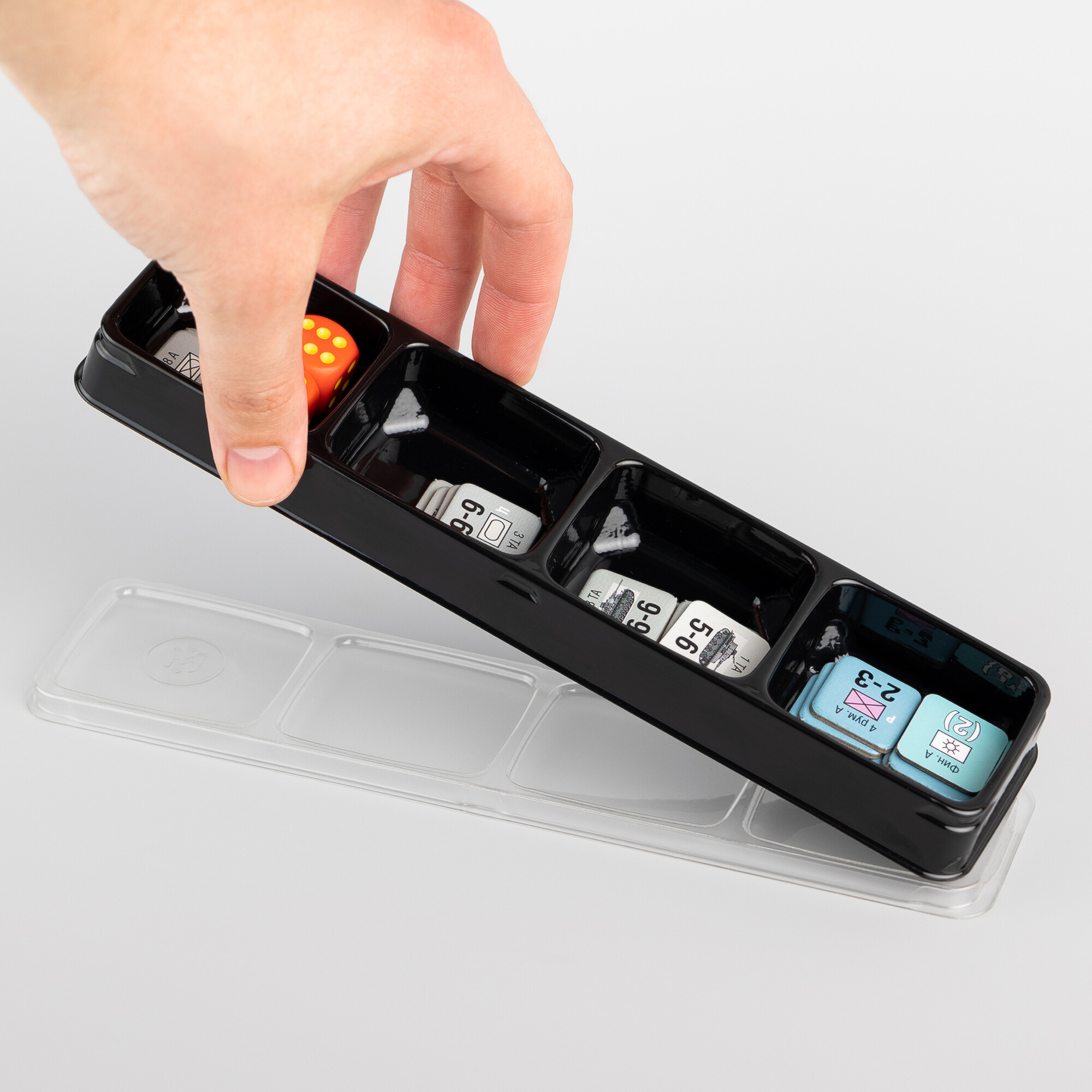 Выполненная из пластика, коробочка подразделяется на секции и закрывается одной прозрачной крышкой. Данный аксессуар облегчит ваше хранение и транспортировку настольных компонентов, минимизируя возможность потери. В комплекте вы найдете пять коробочек.