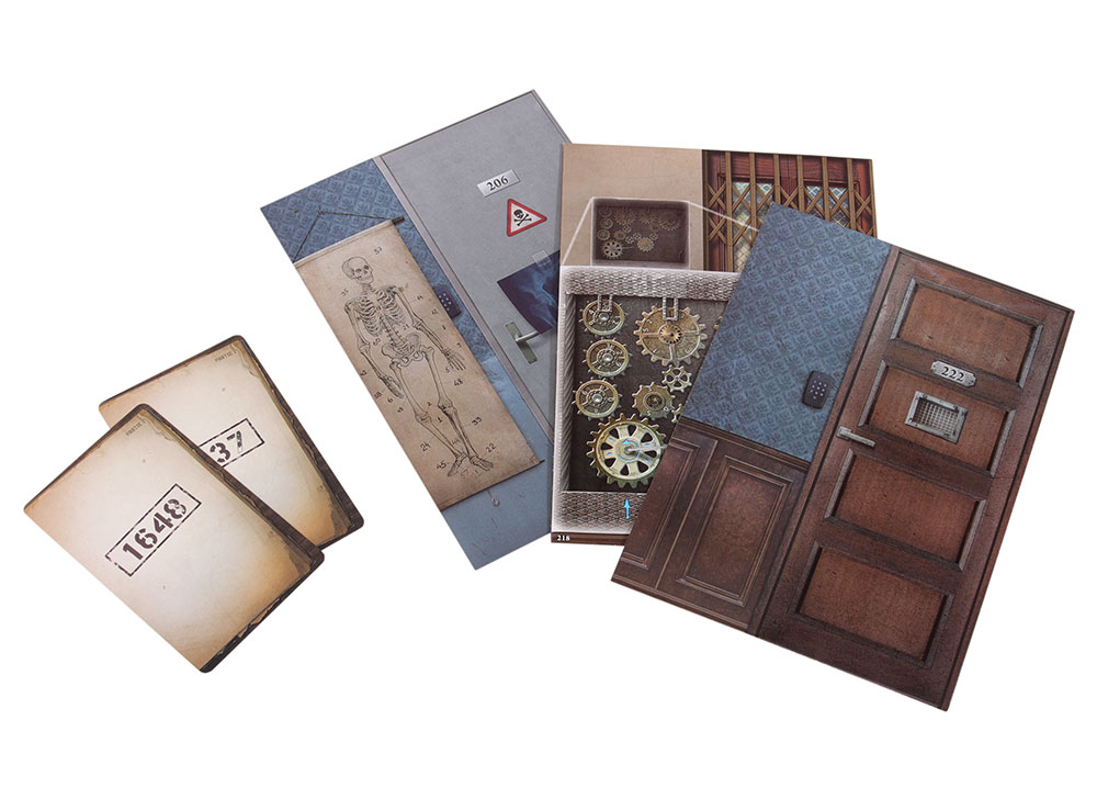 2 колоды (130 карт в Части 1 и 163 карты в Части 2), 2 дополнительные колоды (6 карт в Части 1 и 15 карт в Части 2), 29 конвертов (в каждом находятся некоторые предметы), 2 плана этажей больницы, 6 буклетов с подсказками и решениями, 6 листов учета времени, правила игры, 2 списка компонентов.