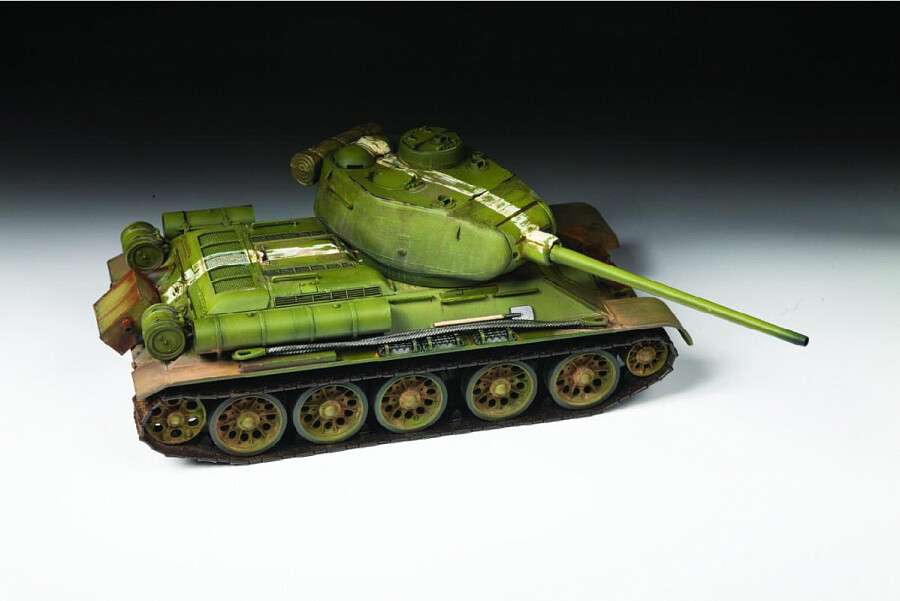 Историческая справка: Танк Т-34/85 по праву считается лучшим средним танком периода Второй Мировой войны. От однотипных иностранных танков он выгодно отличался оптимальным сочетанием основных боевых характеристик - огневой мощи, защищённости и подвижности, а также высокой ремонтопригодностью и технологичностью конструкции, позволившей организовать его массовое производство в крайне сложный для страны период. В годы Великой Отечественной войны танк Т-34/85 выпускался на трёх заводах. Данная модель представляет собой модель танка Т-34/85 с пушкой 3I/IC-C-53, изготовленного на заводе № 183 осенью 1944 года.