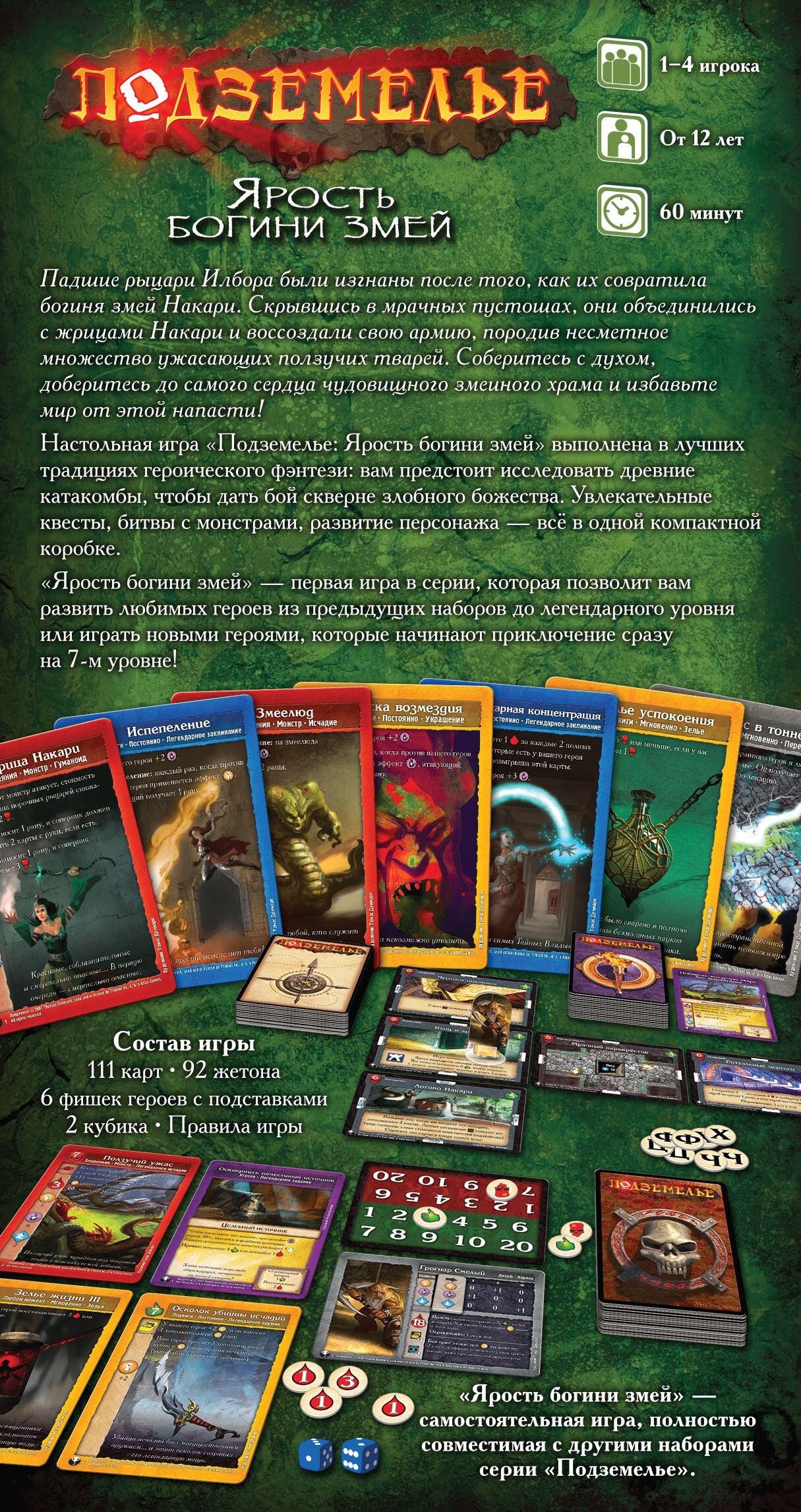 Встречайте свежий выпуск карточных приключений! В одиночку, или с друзьями, выбирайте своего героя и отправляйтесь в новое опасное путешествие. Выстраивайте подземелье карта за картой, сражаясь с монстрами и добывая новые полезные предметы и могущественные артефакты. Улучшайте уровень своего персонажа и выполняйте различные задания. Змеиный храм таит множество тайн и опасностей - вас ждут новые испытания и новые легендарные противники. При наличии других выпусков серии, вы можете объединить несколько игр в одну, что увеличит время игры. Подземелье ждет своих героев!
