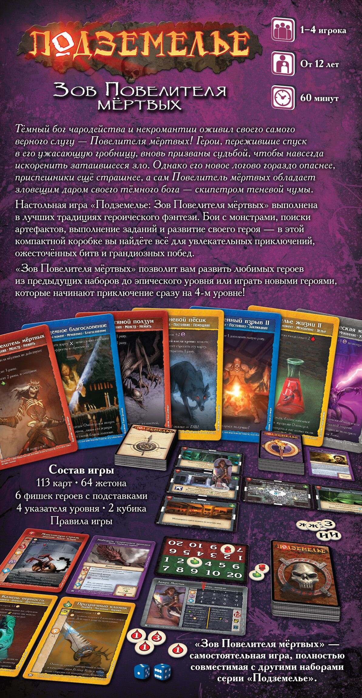Новый набор карточных приключений предложит вам увлекательные сражения с монстрами, выполнение заданий, добычу снаряжения и исследование темных катакомб, составляемых из карт местности. Познакомьтесь с новыми героями, или используйте полюбившихся, если у вас есть предыдущие наборы серии. Теперь игроки смогут прокачать своих персонажей до эпических уровней. Однако, достойное испытание для них тоже найдется, ведь эпическими станут не только ваши персонажи, но и некоторые монстры. Попробуйте свои силы в новой части знаменитой серии и положите конец древнему злу!