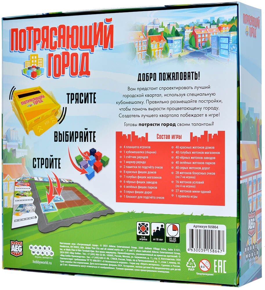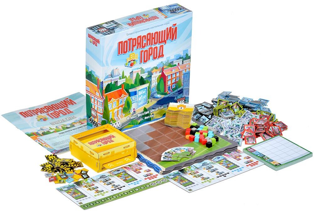 В данной соревновательной игре участники возьмут на себя роли искусных строителей и попробуют выяснить, кто из них создаст лучший район в городе. Для каждого игрока в начале раунда жетоны построек будут выпадать случайным образом, и его грамотное использование полученного станет ключом к победе. Разные типы зданий приносят вам бонусные очки в зависимости от их расположения на карте и друг возле друга. Попробуйте комбинировать заводы и парки, дороги и магазины, получая преимущество и продумывая свои ходы. Получите максимальную выгоду и обойдите своих соперников!