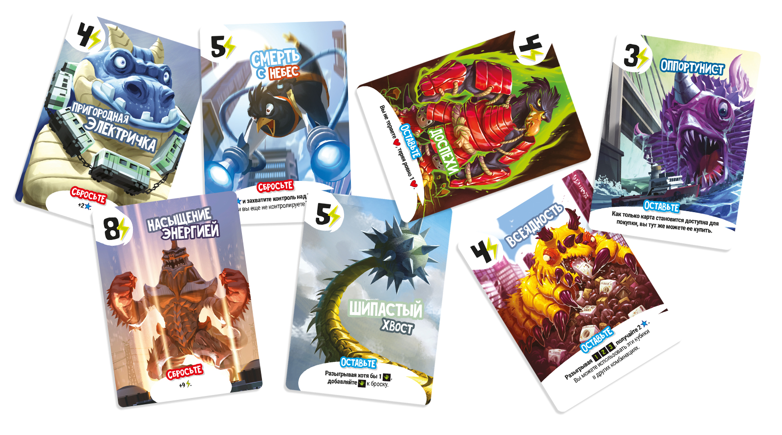 Возьмите под свой контроль одно из чудовищ, например, Киберкису. И с грацией роботизированной, но няшной кошечки врывайтесь в самую гущу событий! Кидайте специальные кубики, которые подскажут вам, чем заняться в этот ход: крушить других монстров или здания вокруг вас. Если хочется увеличить градус веселья, то можно добавить специальные карты и воспользоваться, скажем, нунчаками из пригородной электрички.