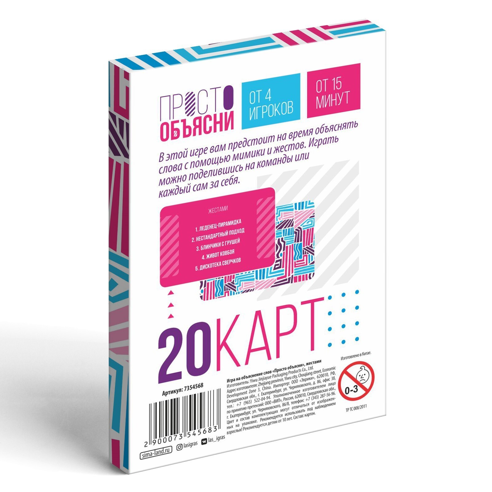 Компактная викторина подойдет для игры в дороге или дома. Поделитесь на команды и попробуйте угадать, что показывает ваш напарник, объясняя загаданное слово жестами. В коробке вы найдете двадцать карт со словами. Кто сможет угадать наибольшее количество слов, тот и победит!