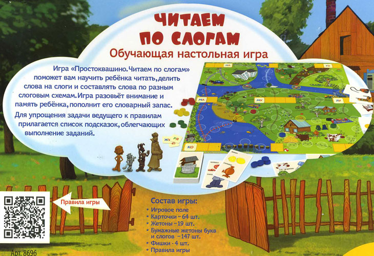 Простой и веселый способ узнать, из чего состоят слова! В компании героев любимого мультфильма самые юные игроки, под руководством взрослого ведущего, будут обучаться составлению слов. Главной задачей станет сбор жетонов разных цветов, которые можно будет получить от ведущего за выполнение заданий. К примеру, жетоны красного цвета можно будет получить, если правильно назвать нарисованный цветок и разобрать его название по слогам. Зеленые игрок получит, если найдет среди нескольких слов то, которое отличается от остальных количеством слогов. Синие жетоны достанутся участнику, отделившему по слогу с начала двух слов и составлению из них нового слова. А желтые станут наградой за угадывание слова по одному слогу. Большой выбор заданий и простые правила помогут юным игрокам освоить словосложение!