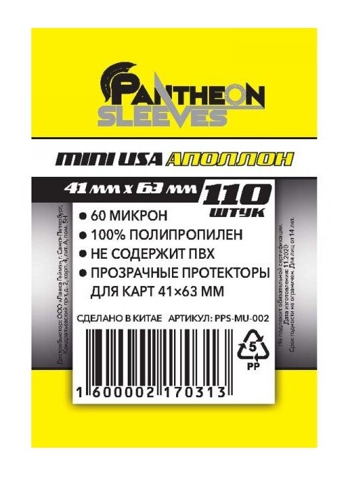 Протекторы Pantheon Аполлон (размер 41х63 мм) 110 шт, стандарт: прозрачные