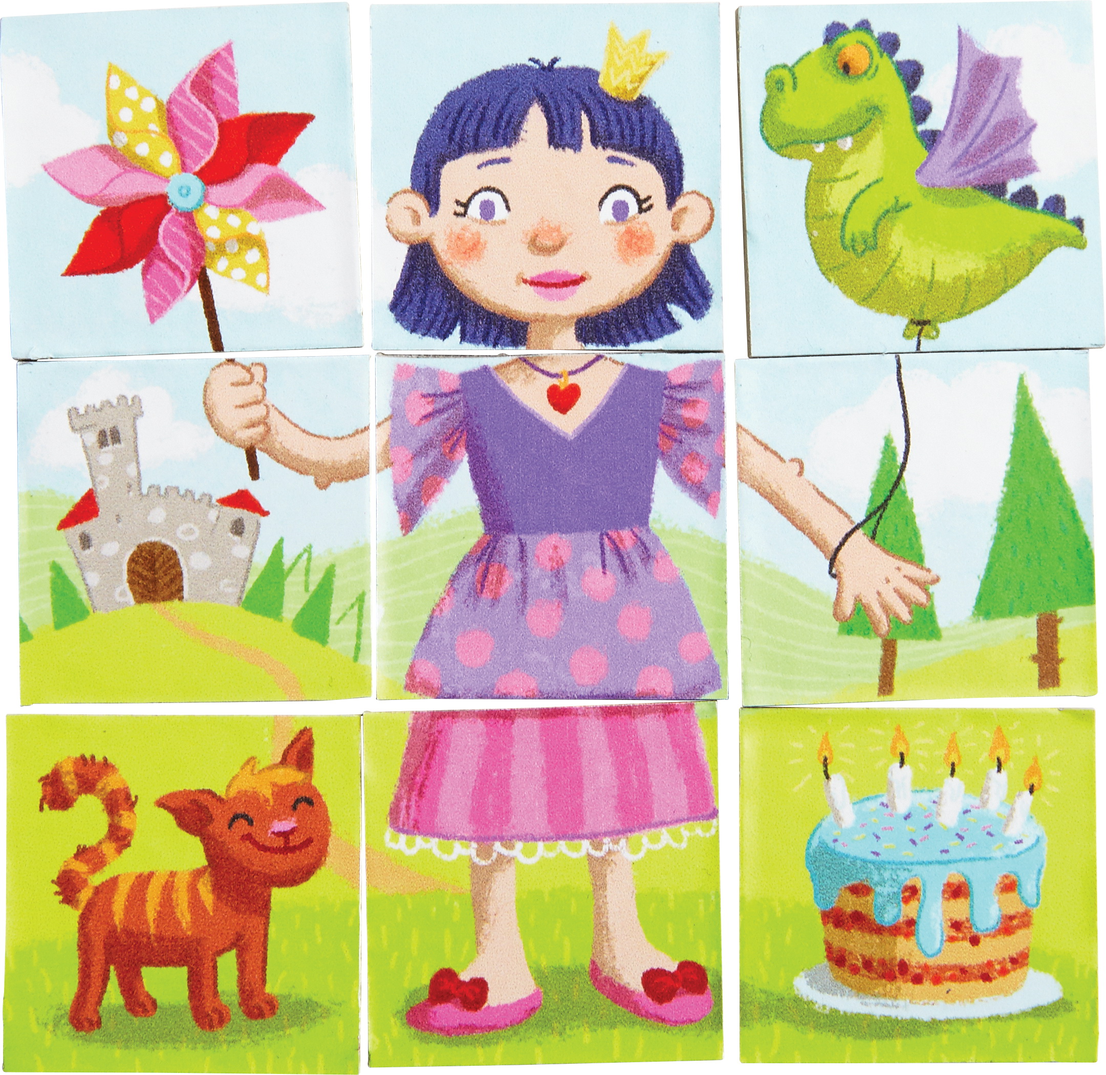 В данной детской развивающей игре для самых маленьких участники смогут развить мелкую моторику и потренироваться в простейшем счете. Задача - первым собрать изображение принцессы, состоящее из девяти квадратов. Игроки кидают кубик и перемещают фигурку пса. На каком квадрате тот остановится, тот и пойдет в общую картину. Если на кубике выпадет значение звезды, игрок сам сможет выбрать, какой квадрат он хочет получить, тем самым заработав преимущество.