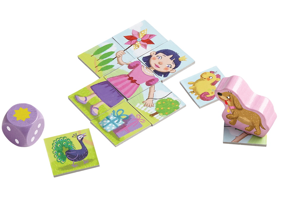 Помогите милой собачке найти принцессу! В данной детской развивающей игре для самых маленьких участники смогут развить мелкую моторику и потренироваться в простейшем счете. Задача - первым собрать изображение принцессы, состоящее из девяти квадратов. Игроки кидают кубик и перемещают фигурку пса. На каком квадрате тот остановится, тот и пойдет в общую картину. Если на кубике выпадет значение звезды, игрок сам сможет выбрать, какой квадрат он хочет получить, тем самым заработав преимущество. Участник, первым собравший пазл, станет победителем!