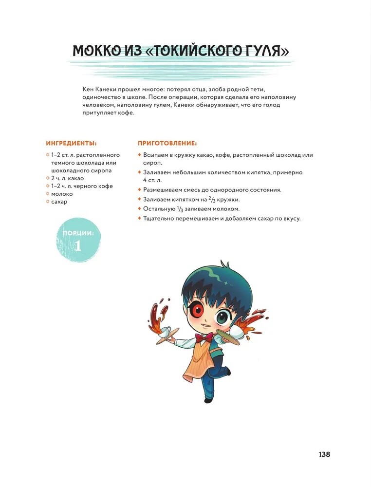 Данный сборник содержит множество рецептов блюд и напитков из множества культовых аниме-сериалов. Соответствующе оформленные, рецепты подробно расписаны и подкреплены фотографией готового результата. Откройте книгу и приготовьте еду своих любимых персонажей!