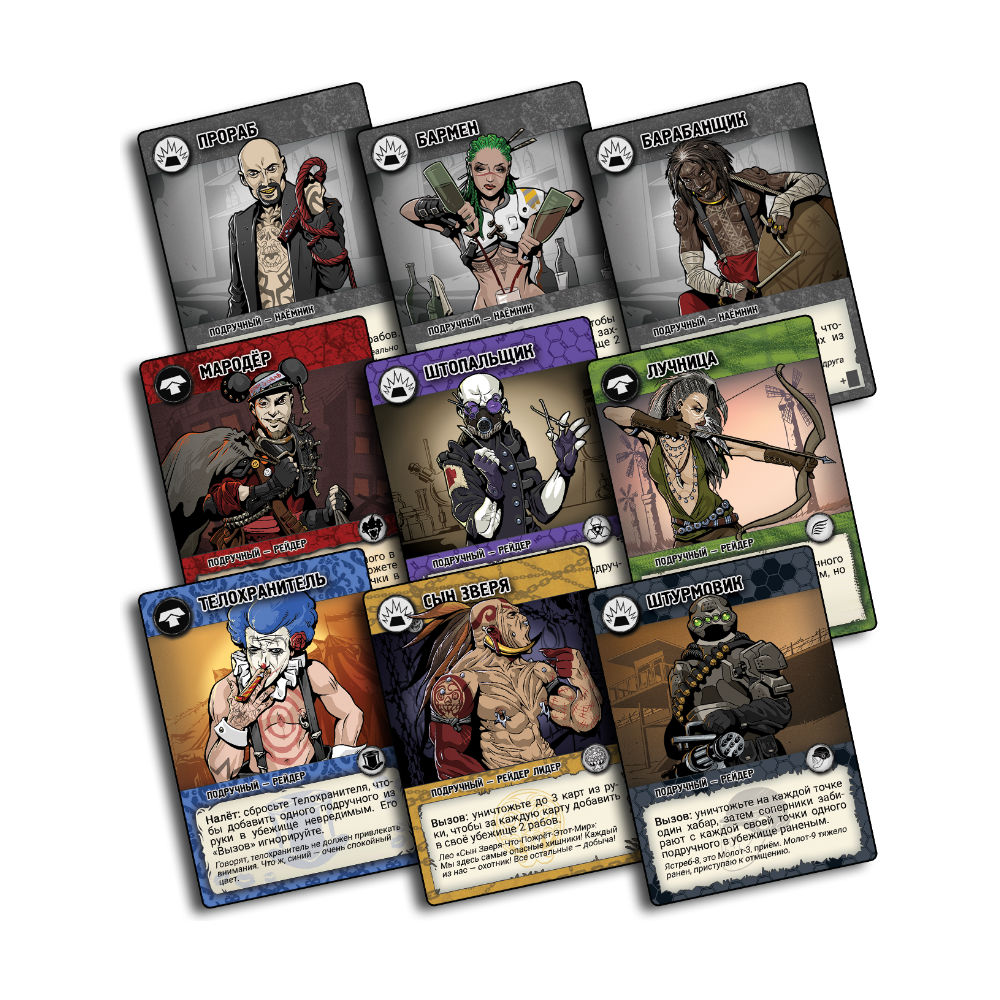 Миру наступил конец, но жизнь продолжается. Правда теперь, это не жизнь, а выживание... В данной настольной игре станут главарями банд рейдеров, жестоких головорезов, ищущих свое место под солнцем. Игра длится несколько раундов, в которых вам предстоит сражаться друг с другом за территории с помощью карт бандитов, и стараться забрать хабар для получения победных очков. Своих наемников можно улучшать и стараться выложить их большим числом, чем есть на базе соперника. Тогда вам улыбнется удача, и победа станет чуть ближе. Все это дополнено яркими иллюстрациями, отсылающими ко множеству знаменитых представителей жанра. Открывайте коробку и окунитесь в притягательную атмосферу постапокалипсиса!