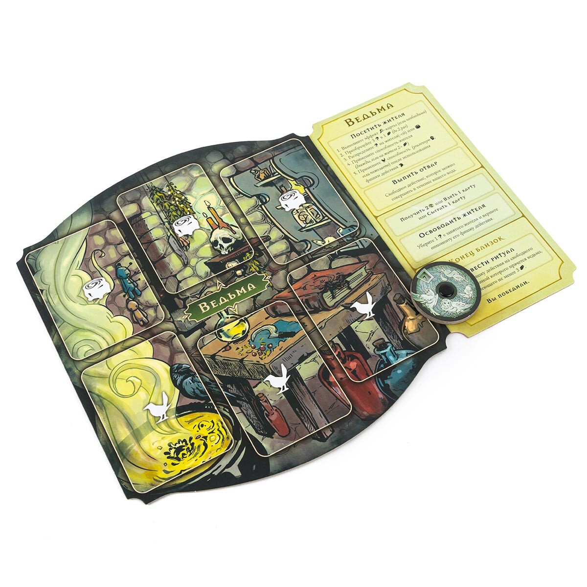 - 3 фишки действия ведьмы и прислужника