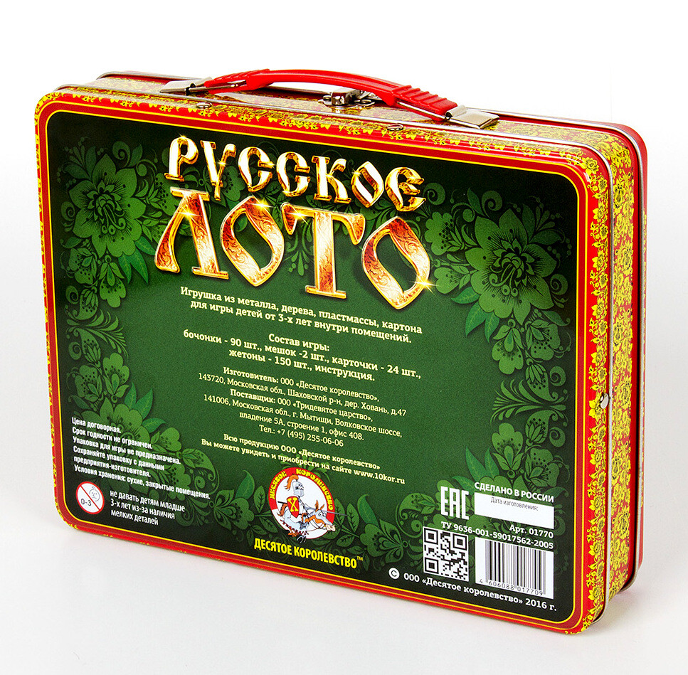 Простое и увлекательное, лото подойдет для разных возрастов, добавит азарта и соберет за одним столом множество игроков. Данный набор поставляется в красочном жестяном чемодане, благодаря чему игру легко можно взять с собой куда угодно. Компоненты выполнены из качественного дерева, а карточки с цифрами изготовлены из картона.