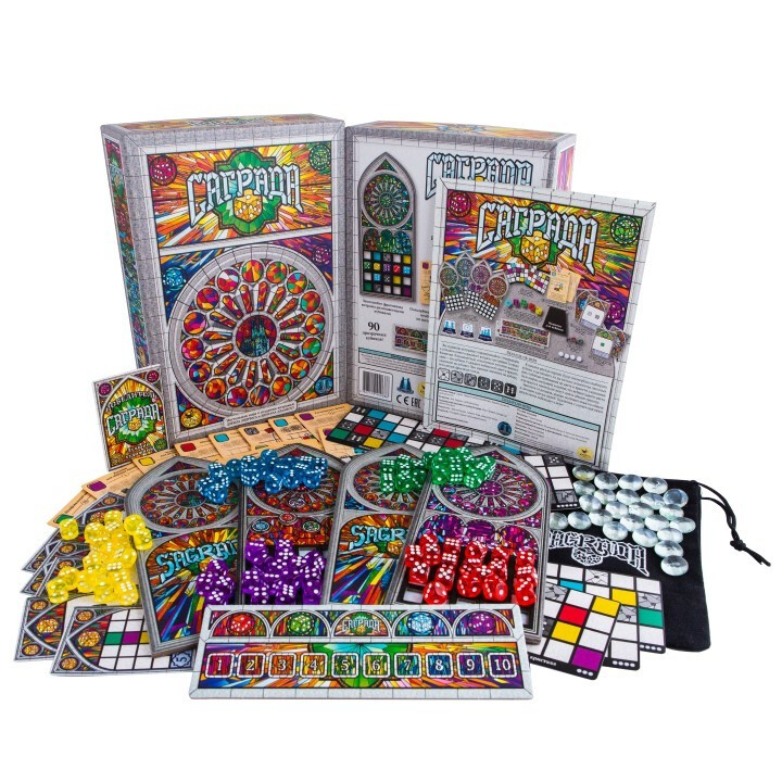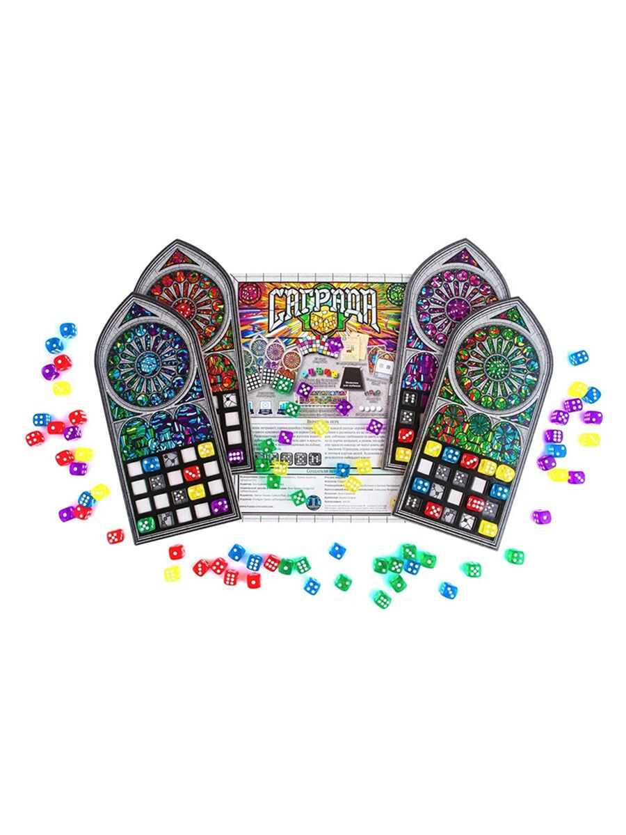 Знаменитому собору нужны самые красивые витражи, и без вашей помощи не обойтись! В данной абстрактной настольной игре каждый участник получит планшет витража и карту личной цели. Стеклами выступят разноцветные кубики, которые предстоит бросать и выкладывать на свой планшет, но делать это по определенным правилам - в соответствии с цветом витража, без одинаковых по цвету рядом друг с другом, и прилегающих один к другому хотя бы по диагонали. В конце игры, при подсчете победных очков, участник получит дополнительное преимущество, если он выполнил личную цель, и потеряет очки за каждый пустой квадрат на витраже. Создайте самый красивый витраж и станьте победителем!