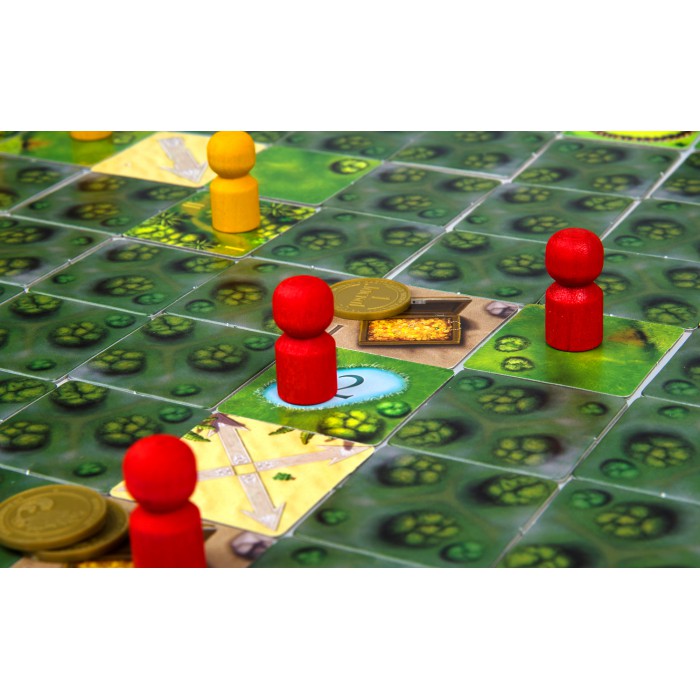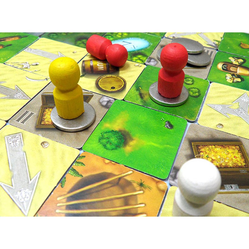 Сокровища пиратов ждут! Перед вами настоящая классика настольных игр, в которой каждый участник возглавит небольшой отряд пиратов в поисках закопанных кладов. Противостояние игроков происходит на острове, представляющем из себя большое количество квадратов, лежащих взакрытую. Наступая пиратом на каждый участок острова, игрок переворачивает его, и рисунок на обратной стороне будет определять его дальнейшие действия. Участнику может попасться клад с монетами, либо он может угодить в ловушку на несколько ход, наткнуться на крокодила, найти воздушный шар и многое другое. Вариативность данной игры приятно порадует, ведь, по сути, игровое поле каждый раз собирается по-новому. Чтобы получить победное золото, его надо донести обратно на свой корабль, причем по одной монете за раз. Игрок, который будет в этом самым результативным, станет победителем!