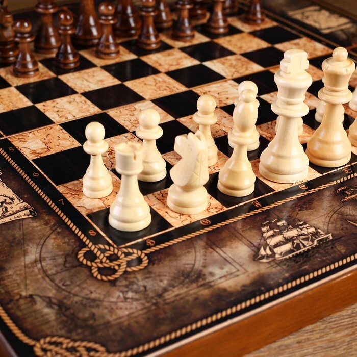 Настольная игра Шахматы "Морская карта" 50*50 см