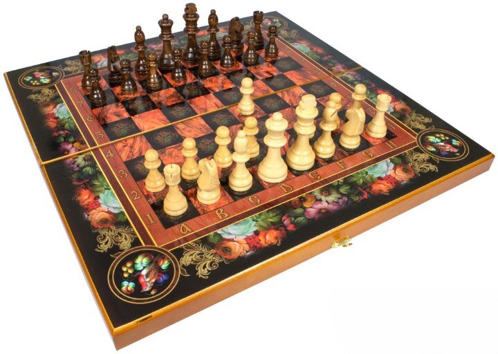 Шахматы, шашки, нарды большие 3в1 (50х50) - Цветы
