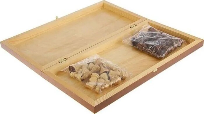 Набор шахмат среднего размера предложит вам настоящее интеллектуальное противостояние. Коробка, она же игровое поле, а также фигуры, изготовлены из прочного дерева и обработаны лаком. Выставляйте фигуры на поле и попробуйте победить своего оппонента!