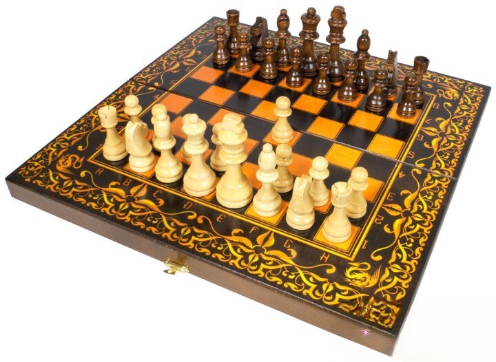 Шахматы по праву считаются благородной дуэлью умов. С помощью этого набора вы сможете поучаствовать в интеллектуальном противостоянии с оппонентом. Корпус и фигуры выполнены из дерева, покрытого лаком, а по периметру поля располагается красочный узор. В разложенном состоянии размер поля составляет 400x40мм.