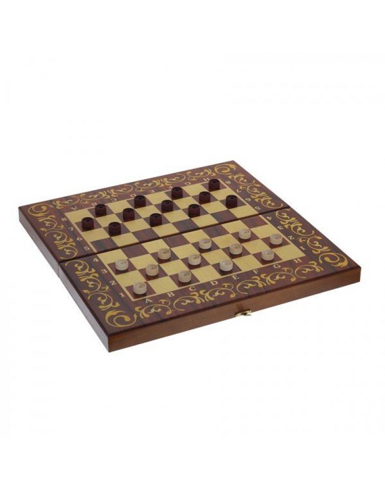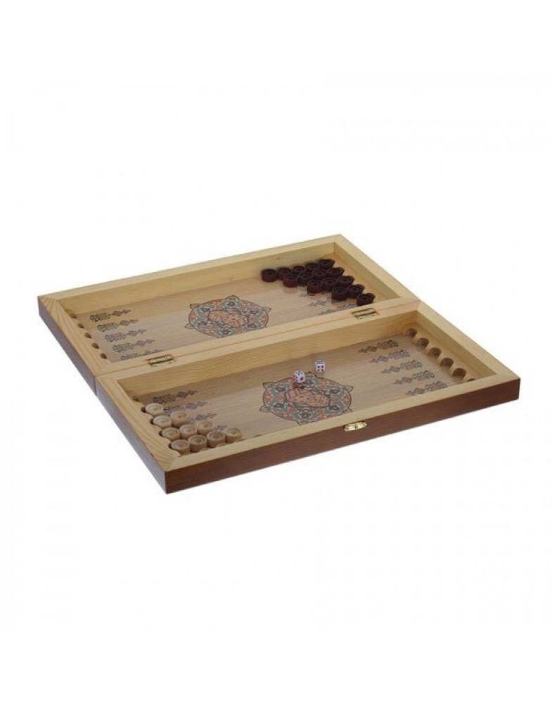 С данным красочным набором вы легко сможете сойтись в интеллектуальной дуэли со своим соперником. Набор покрыт лаком, имеет деревянные фигуры и узор на внешней стороне. В разложенном состоянии игровое поле имеет размер 400x400мм.