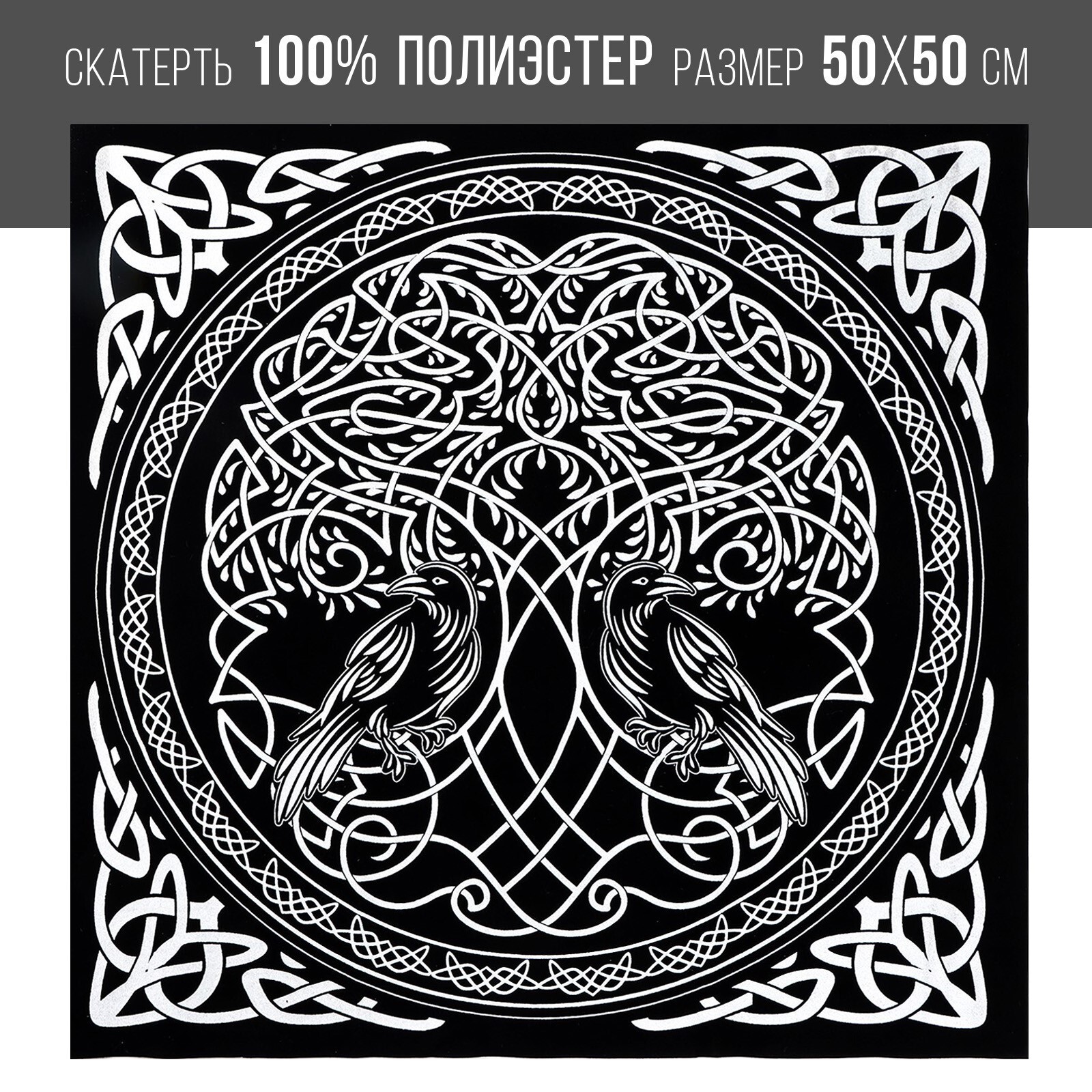 Изготовленная из бархатной ткани, данная скатерть подойдет для декора и гадания на картах таро. Выполненная в черно-белом цвете, скатерть имеет изображение знаменитого символа жизни, встречающегося во многих культурах и философиях.
