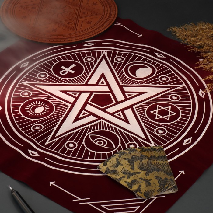 Скатерть для гадания предназначена для удобного расклада карт таро. Выполненная из текстиля, скатерть имеет плотную текстуру красного цвета. Данный вариант представлен в размере 500x500мм.