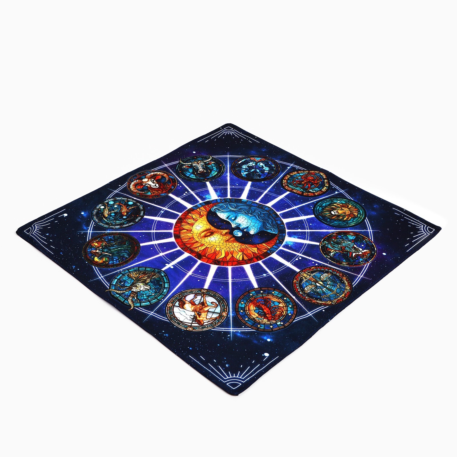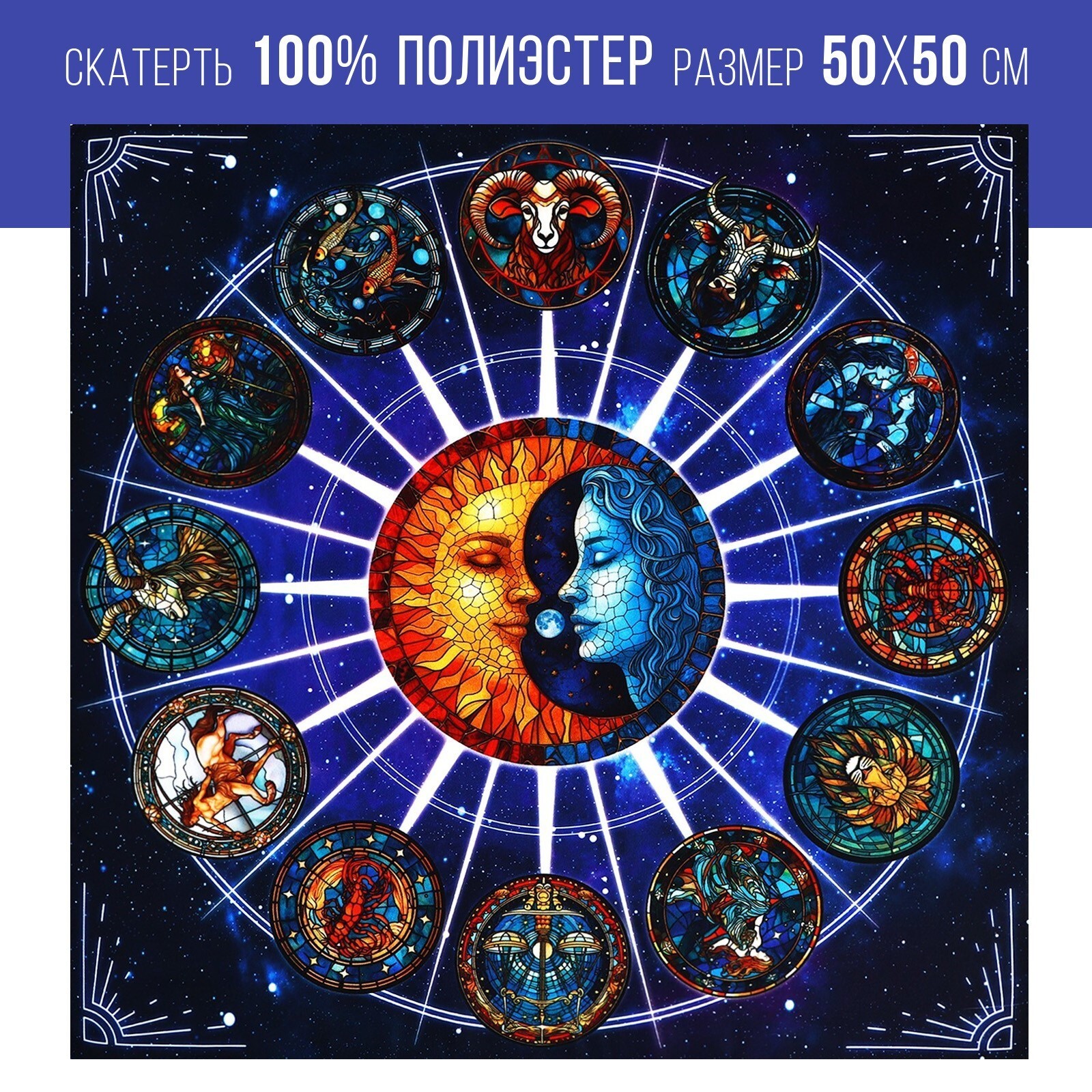 Подобная скатерть, по мнению знатоков таро, ограждает элементы гадания от внешних воздействий. Изготовленная из прочной ткани, скатерть имеет красочное и аутентичное визуальное оформление. Помимо прямого назначения, вы можете использовать данный аксессуар для декора стен.