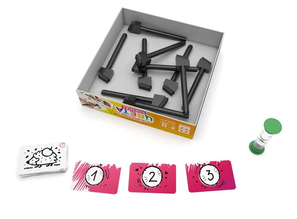 Цветное противостояние выходит на новый уровень! Как и раньше, игрокам предстоит запоминать цвета рисунков, а затем воспроизводить их на обратной стороне карты, которая черно-белая. Колпачки у фломастеров периодически меняются местами, поэтому нужно постараться не ошибиться и выбрать правильный цвет. Теперь делать это будет интереснее и веселее, ведь игроки отныне собираются в команды, а для победы необходимо закрасить правильно как можно больше карт за пять минут. Помимо этого, в данной версии добавили специальные маркеры, вытягивание которого гарантирует необычное и веселое задание. Собирайтесь за одним столом, делитесь на команды и постарайтесь обыграть соперников в скоростном раскрашивании. С этой игрой скучать вам точно не придется!