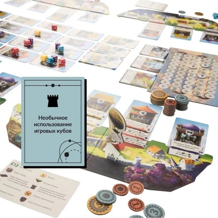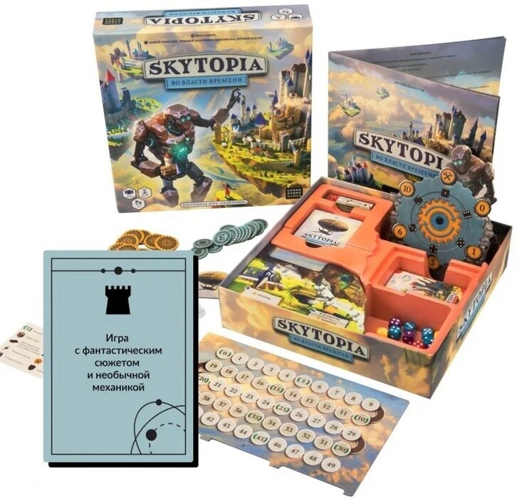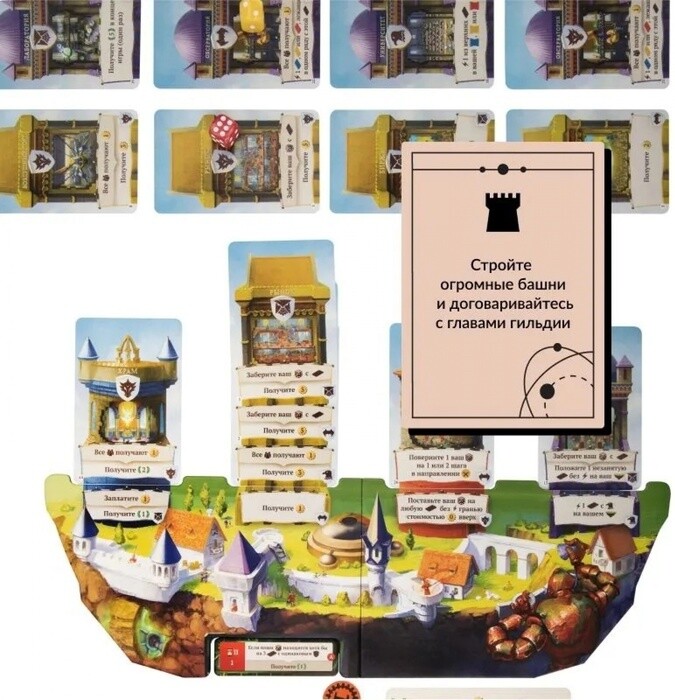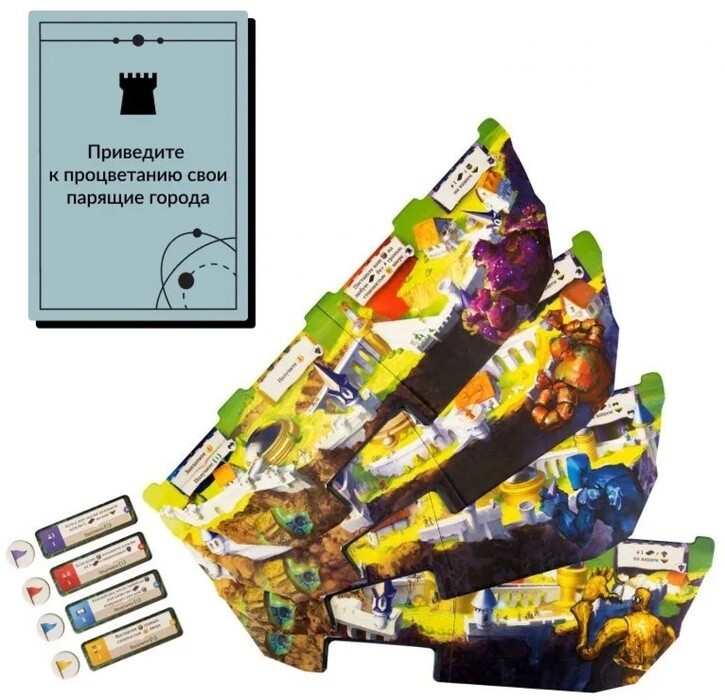 Данная настольная стратегия предложит вам необычные вводные - в роли правителей небесных городов игрокам предстоит заручиться поддержкой големов-строителей и создать лучший город среди прочих. Весь процесс завязан на игровом времени - по умолчанию здания строятся медленно, но вы можете ускорить этот процесс. В этом случае придется раскошелиться на ресурсы, а поэтому дважды подумайте, стоит ли так поступать. Сами же созданные здания играют важную роль и позволяют получить преимущество по ходу партии.