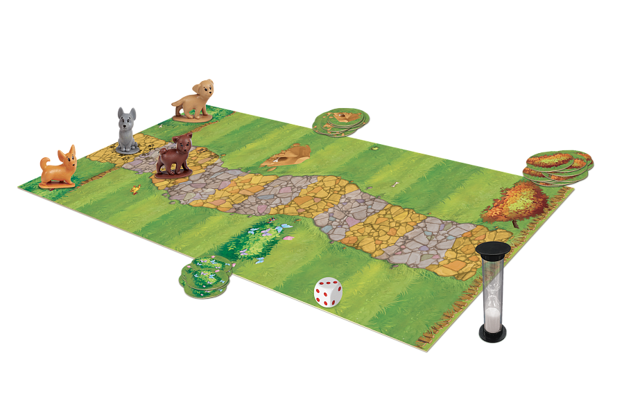 Игровое поле4 фигурки пёсиков42 жетона поискаКубикПесочные часыПравила игры