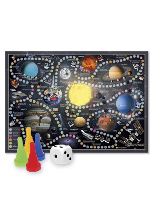 В данной настольной игре участникам предстоит посоревноваться за право первым дойти до финиша. Гонка будет проходить по всей Солнечной системе, и попутно игроки смогут узнать названия планет. Бросайте кубики и передвигайтесь на то количество ходов, значение которых выпало на гранях. Получите преимущество, либо потеряйте несколько шагов, попав в ловушку. Первый игрок, который избороздит космические просторы до конца, станет победителем!