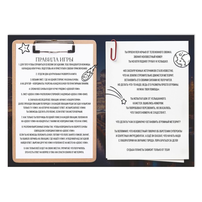 Для спасения земли от разрушительного метеорита остался последний шанс - и этот шанс вы! Готовы показать свои суперсилы и спасти планету? Открывая страницу за страницей, ищите подсказки и решайте головоломки. Найдите все для того, чтобы получить себе сверхспособности и разделайтесь с надвигающейся угрозой!
