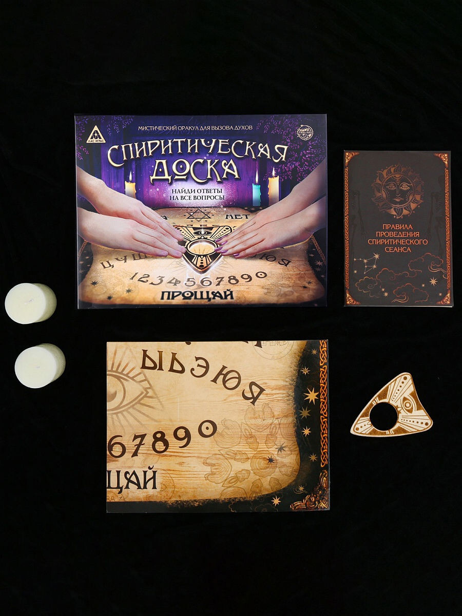 В коробке вы найдете инструкцию с более подробным описанием спиритического сеанса.