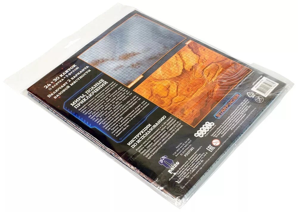 Данное игровое поле идеально подойдет для ваших увлекательных приключений в мире культовой настольной ролевой игры Starfinder. Поле оформлено с двух сторон, и с двух сторон покрыто ламинатом. На одной стороне вы найдете разметку под металлический пол, а на обороте вас ждет рельеф пустующей планеты. Приключения ждут!
