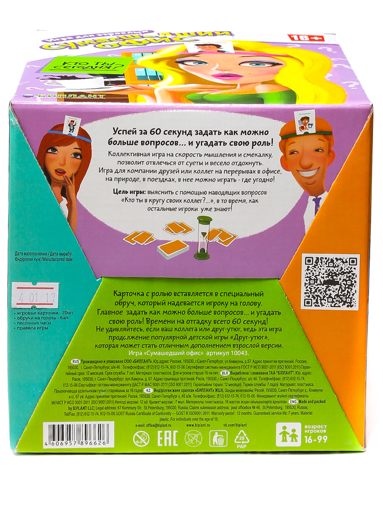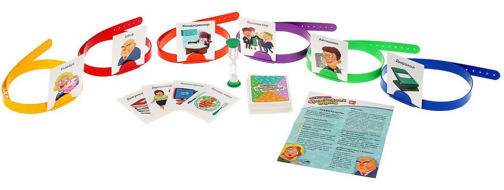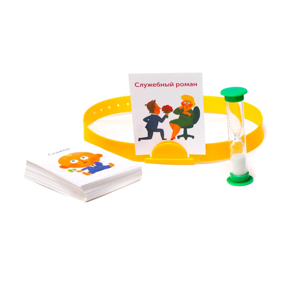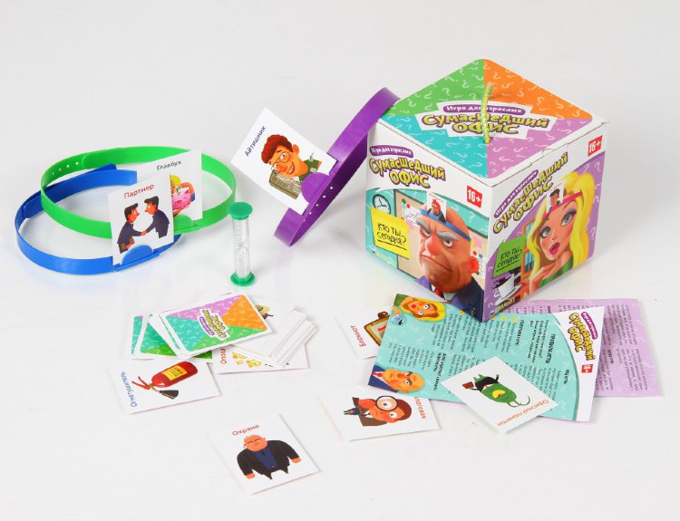 В данной настольной игре участникам предстоит отгадывать персонажей и предметы, находящиеся в офисном помещении. Каждый получает специальный обруч на голову, куда крепится карта рисунком к остальным игрокам. За минуту (песочные часы в комплекте), вам надо отгадать, являетесь ли вы клавиатурой, или бухгалтершой в декрете. Не успели? Ход переходит другому игроку.