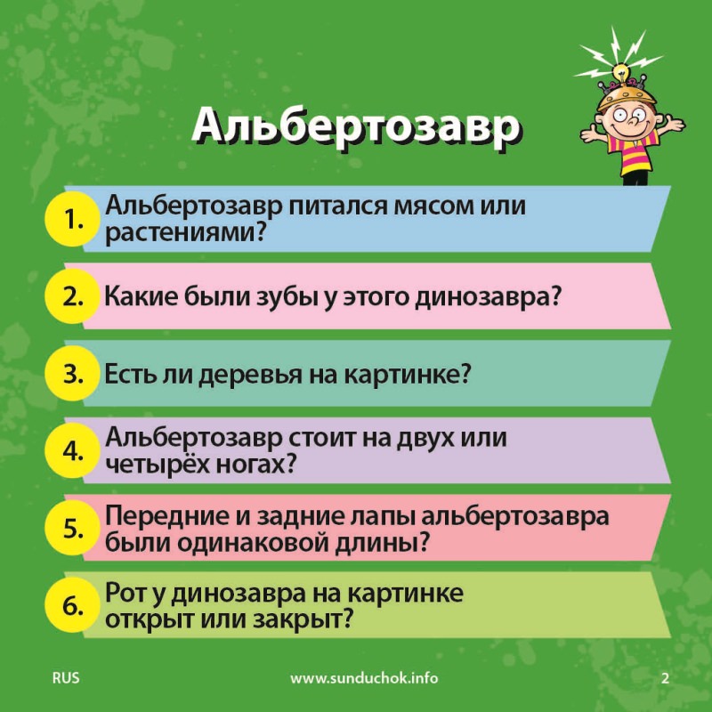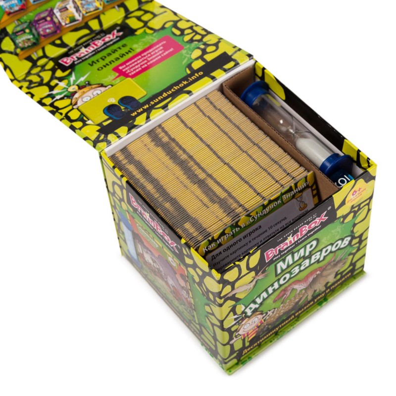 Данная игра станет хорошим тренажером для развития памяти и внимательности, а также предоставит множество занимательных фактов об удивительном мире динозавров. Внутри коробки вы найдете карточки с иллюстрациями и описаниями, которые нужно будет максимально запомнить за десять секунд. После этого игроку будут заданы вопросы по теме, и сколько он даст правильных ответов, столько очков получит!